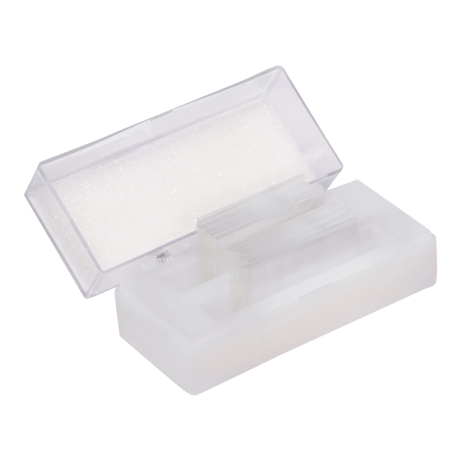 - HINGED STORAGE BOX || 100 Cover Glasses come packed in a plastic box with hinged lid for protection