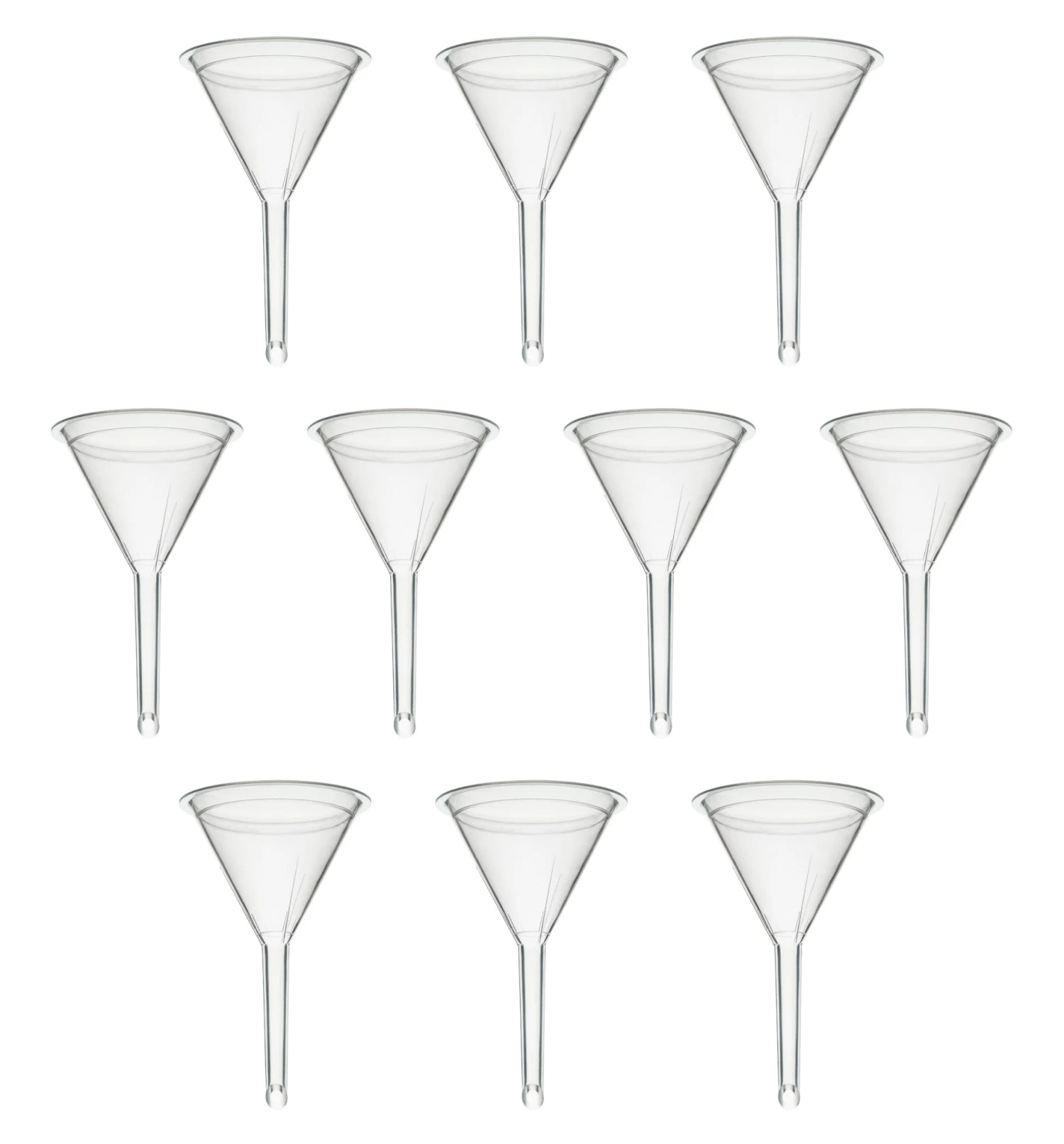 - 10 PACK FILTER FUNNELS || Pack of ten filter funnels, each measuring 3″ wide. Useful for separating solids from liquids, as well as for easier transfers of liquids to narrow mouthed containers