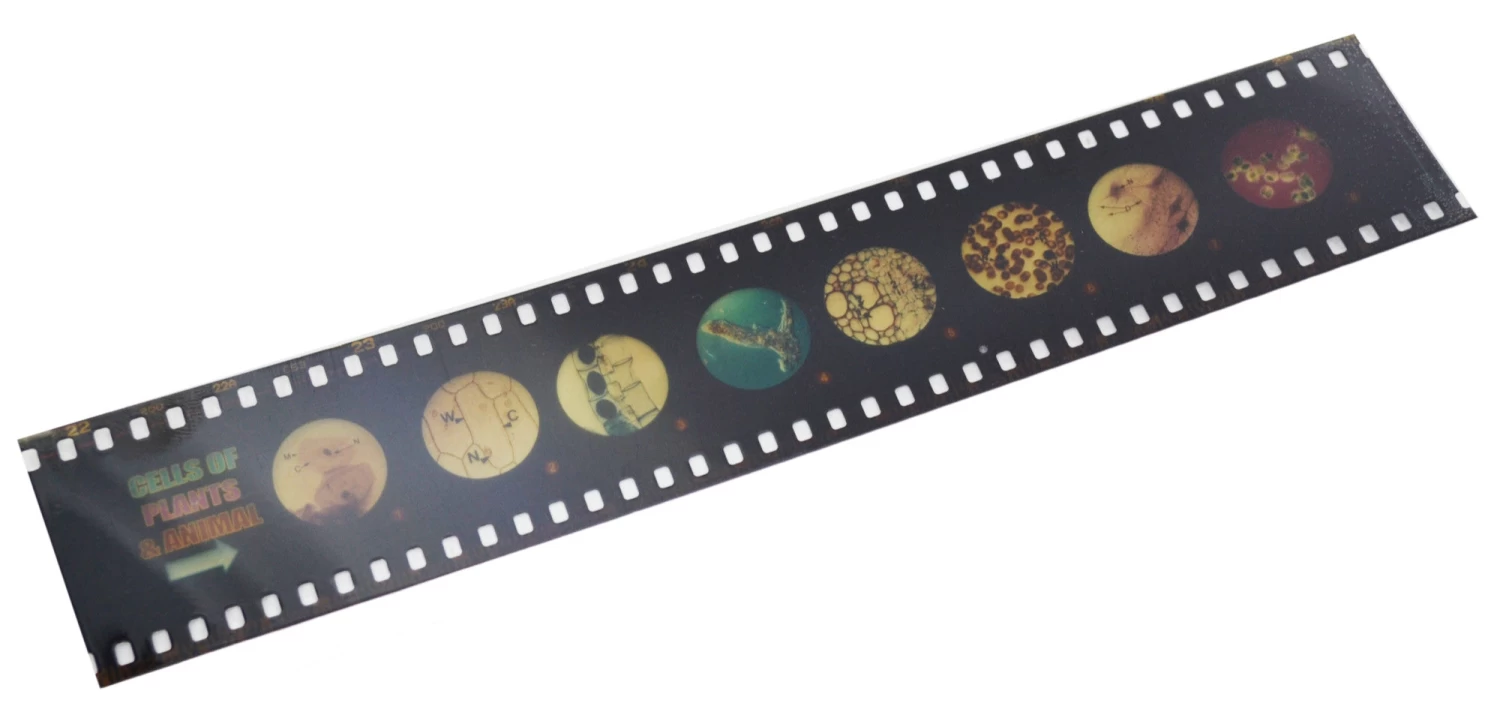 - SLIDOSCOPE || Pack of 10 slidoscopes (35mm film) with 8 different slides picturing stained specimens photographed under ideal conditions from whole mounts to electron micrographs