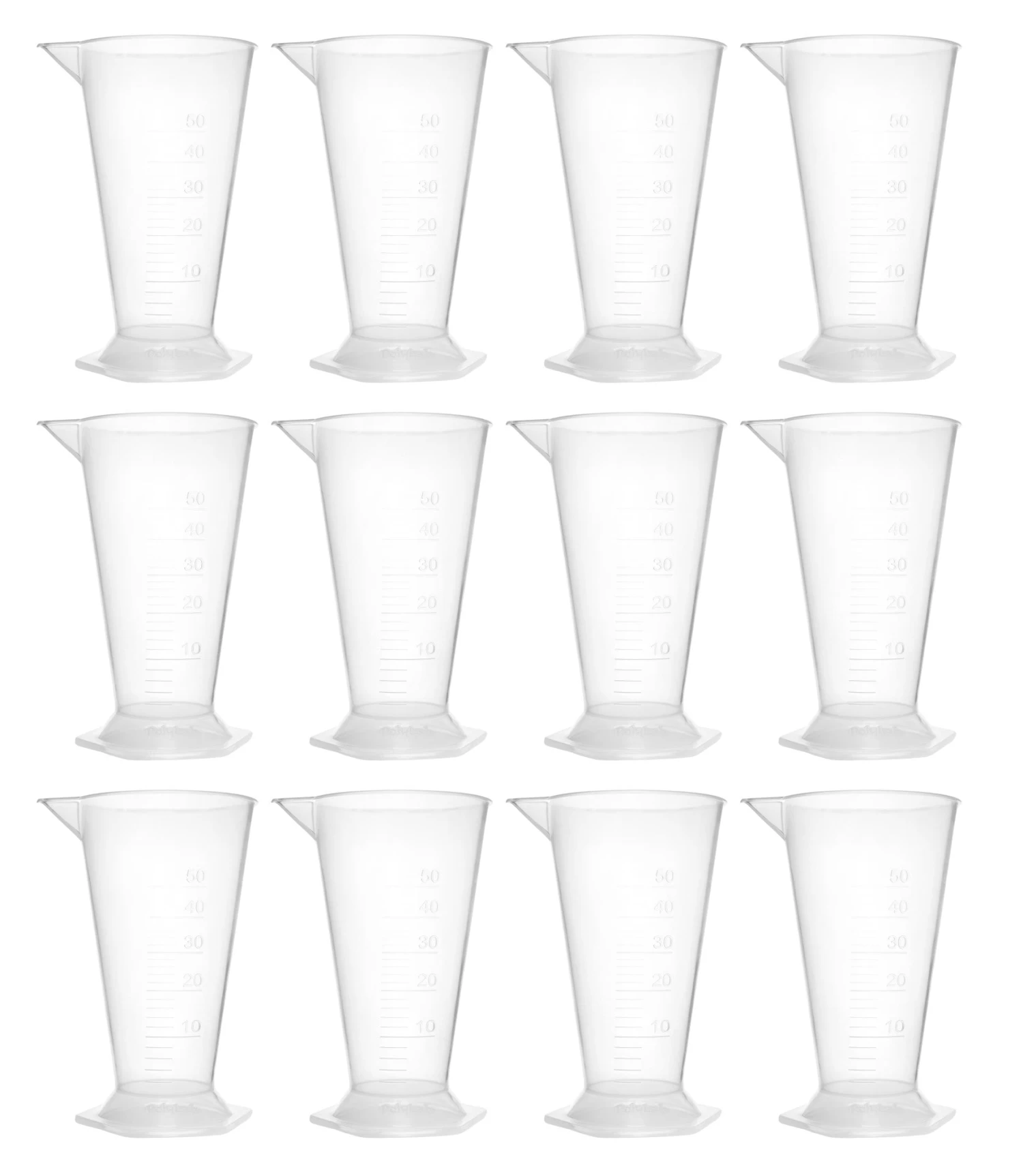 - INDUSTRIAL QUALITY || Pack of 12 conical measures with a 50ml capacity. Made of high quality translucent polypropylene plastic