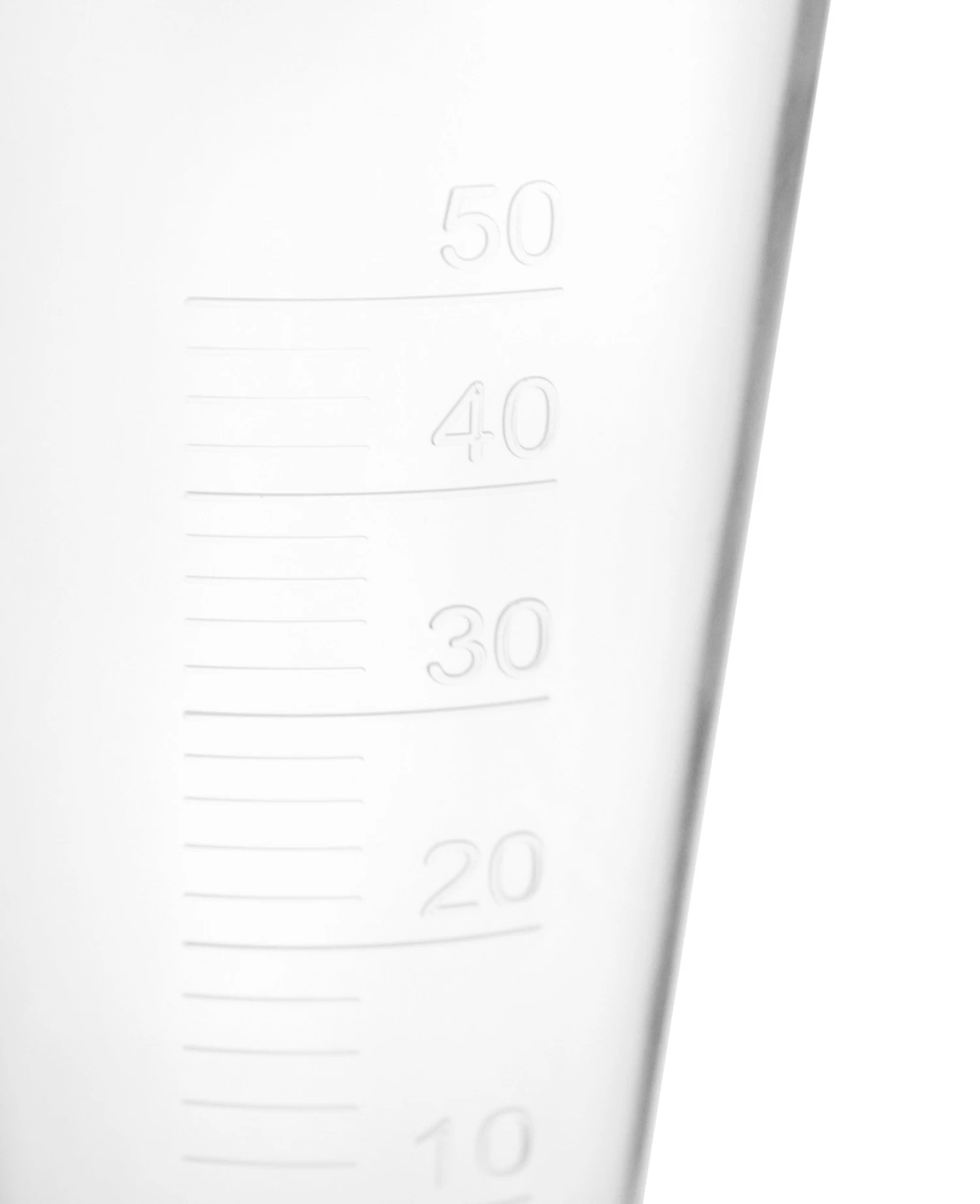 Translucent, rigid construction and superior optical clarity. Easy to read, raised graduation lines. 2ml graduation lines, marked every 10ml. Hexagonal base for extra stability, and a spout for easy pouring.
