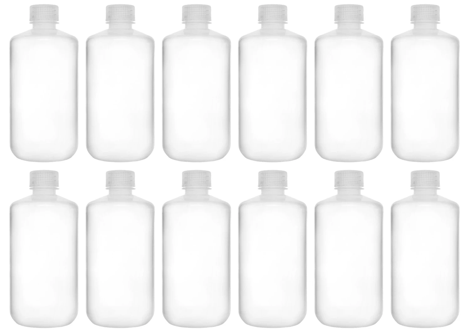 Pack of twelve 250ml capacity, narrow neck reagent bottles with leak-proof screw caps. Perfect for storing chemicals, liquids and powders. Both the bottle and screw cap are made of high quality, rigid polypropylene plastic that is translucent and provides excellent optical clarity.