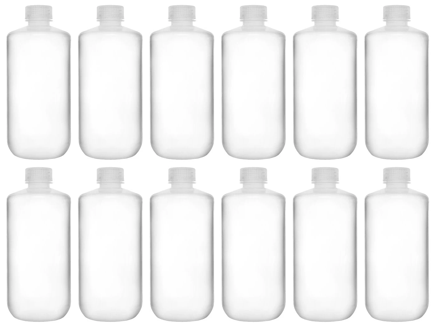 Pack of twelve 500ml capacity, narrow neck reagent bottles with leak-proof screw caps. Perfect for storing chemicals, liquids and powders. Both the bottle and screw cap are made of high quality, rigid polypropylene plastic that is translucent and provides excellent optical clarity.