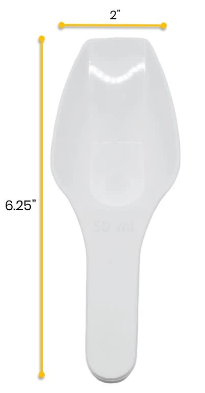 Pack of 12 polypropylene plastic weighing scoops. Each scoop has a 50ml (1.7oz) capacity. Capacity marked on scoop handle for easy identification. Autoclavable and dishwasher safe for easy cleaning. Handle is approximately 2.5″ long. Scoop is 3.75″ long, 2″ wide and 1″ deep.