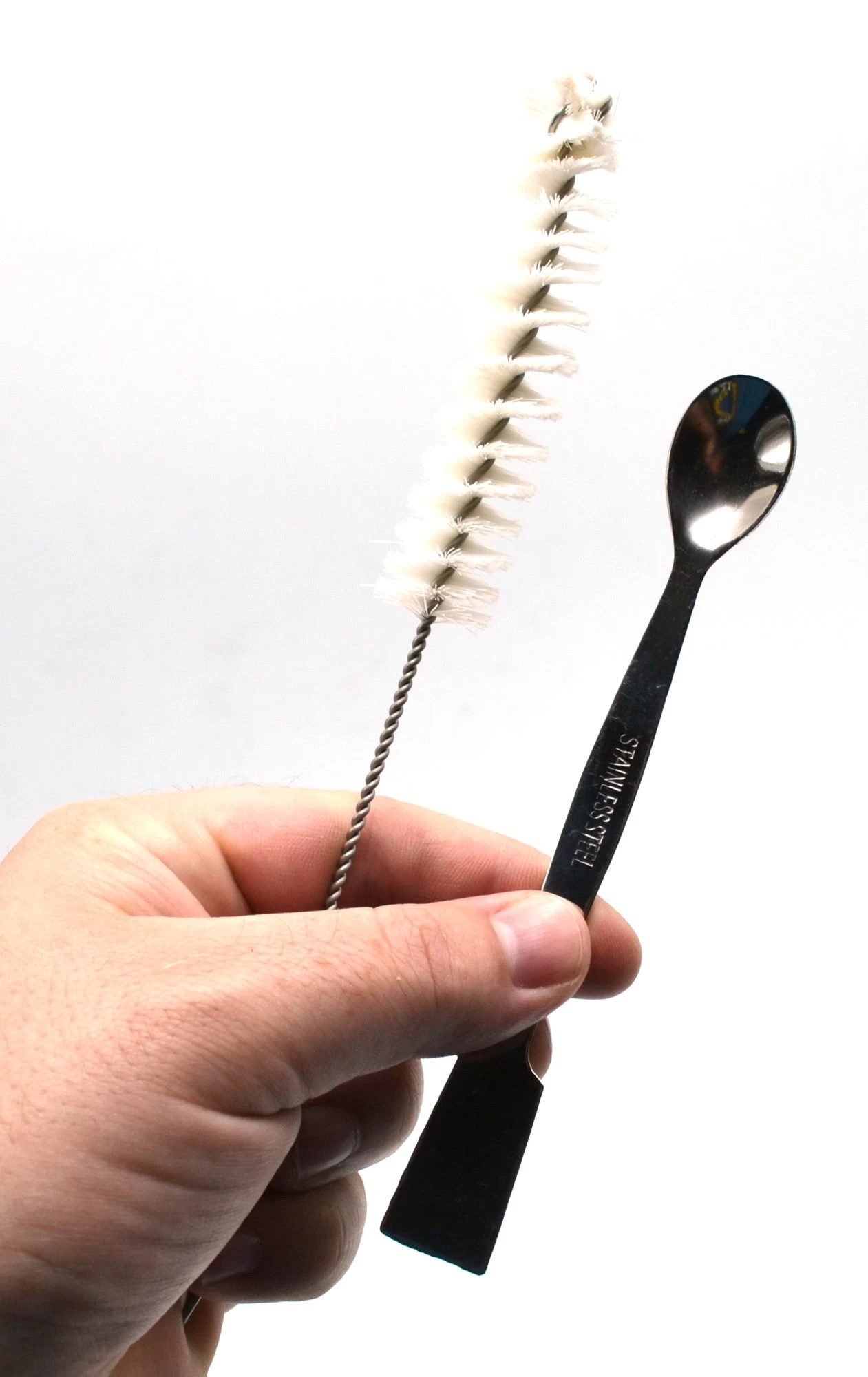 - INCLUDED || The base is 5″X8″ powder coated alloy to resist chemicals and rubber lined bottom to stabilize and prevent bench scratching. Rod is stainless steel and is 12mm in diameter. Bosshead holds 2 rods perpendicular to each other and will accept rods up to 24mm in diameter. The boss head holds the lab clamp which has a maximum opening of 100mm and a minimum grip of 2mm. Both the bosshead and clamp are powder coated. Test tube brush is 21.5cm in total length, the brush section is 100mm in length and 12.5mm in diameter. Flask tongs are 250mm in total length, have vinyl coated tips and has a maximum opening of 200mm. Spatula has both a spoon side and flat side, is a total of 150mm long, and has a maximum width of 20mm. Crucible tongs are 250mm in length and have a maximum opening of 200mm. Test tube tongs are 170mm in length and have a maximum opening of 70mm.