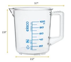 - 3 of Each 50mL (5mL grad.), 100mL (5mL grad.), 250mL (10mL grad.), 500mL (10mL grad.) , and 1000mL (20mL grad.) beakers