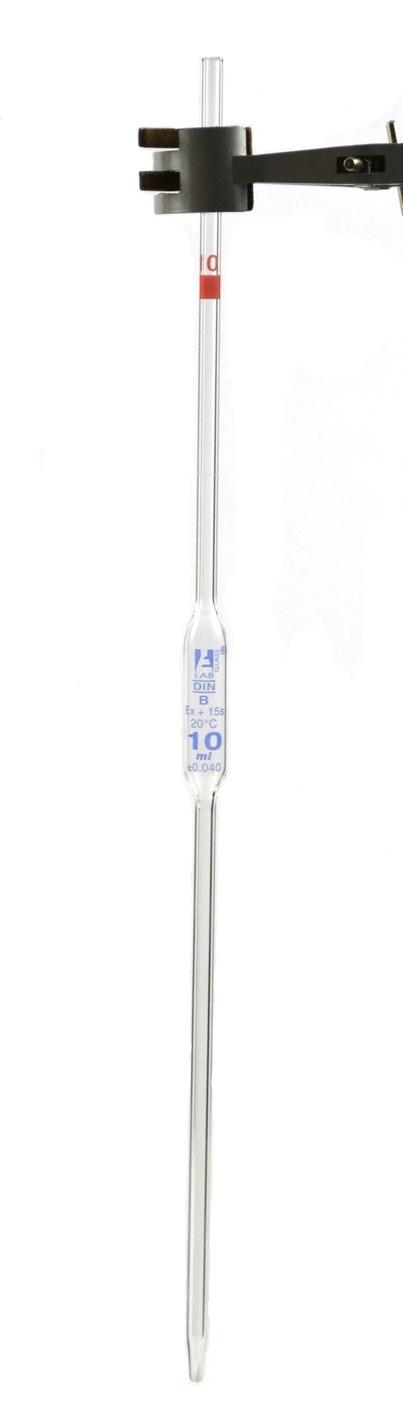 17″ Eisco Labs 10mL Volumetric Pipette, Borosilicate glass, 0.040 tolerance, Class B Glass, Individually wrapped, Clamp not included
