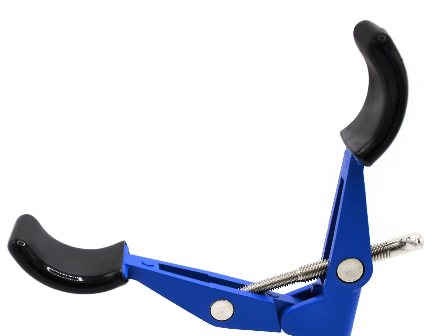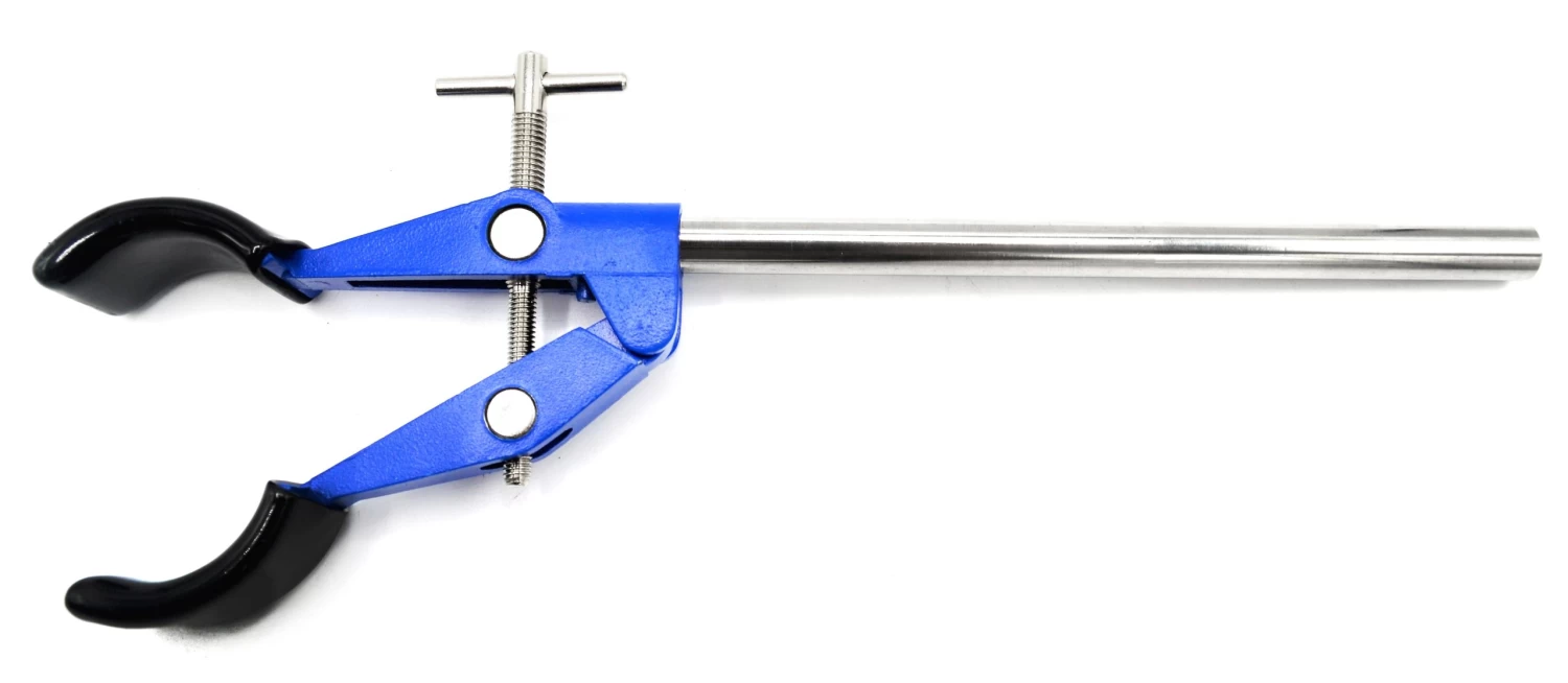 Ideal uses for beakers, Erlenmeyer flasks, test-tubes, boiling (Florence) flasks, burettes. For securing the clamp to a frame or other apparatus an additional holder (sold separately) will be needed. Please see recommended Boss Head list. The screw adjustment allows for precise pressure when gripping glass objects, to avoid potential breakage. The round extension arm allows the clamp to be rotated 360 degrees as well as vary the distance from the support apparatus. The prongs are coated in vinyl for higher temperature applications.