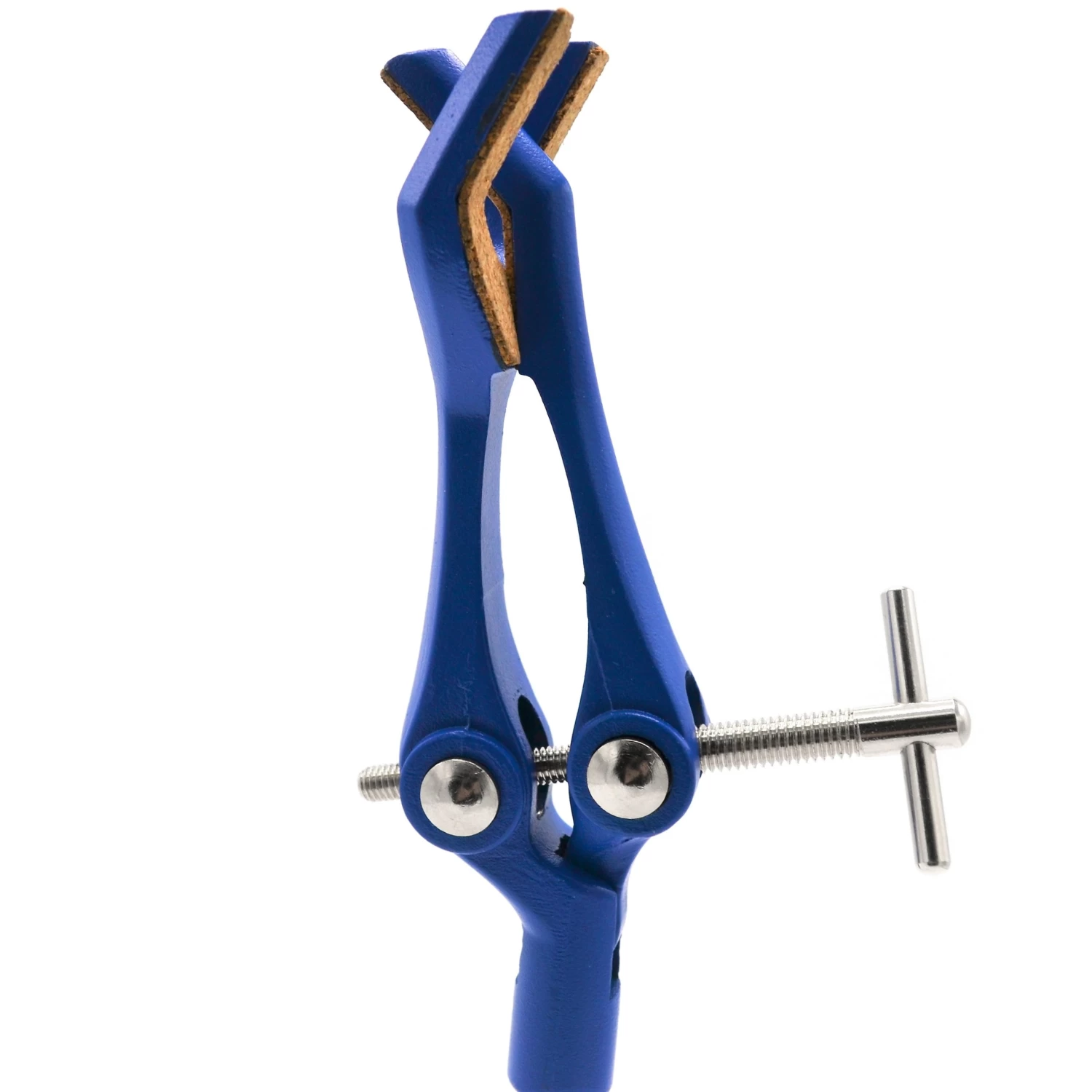 - 3 FINGER, CORK LINED || Clamp accepts apparatus measuring up to 8.5 cm (3.4″). Thread fitted actuating joints. Cork lined prongs provide a cushioned, slip resistant hold