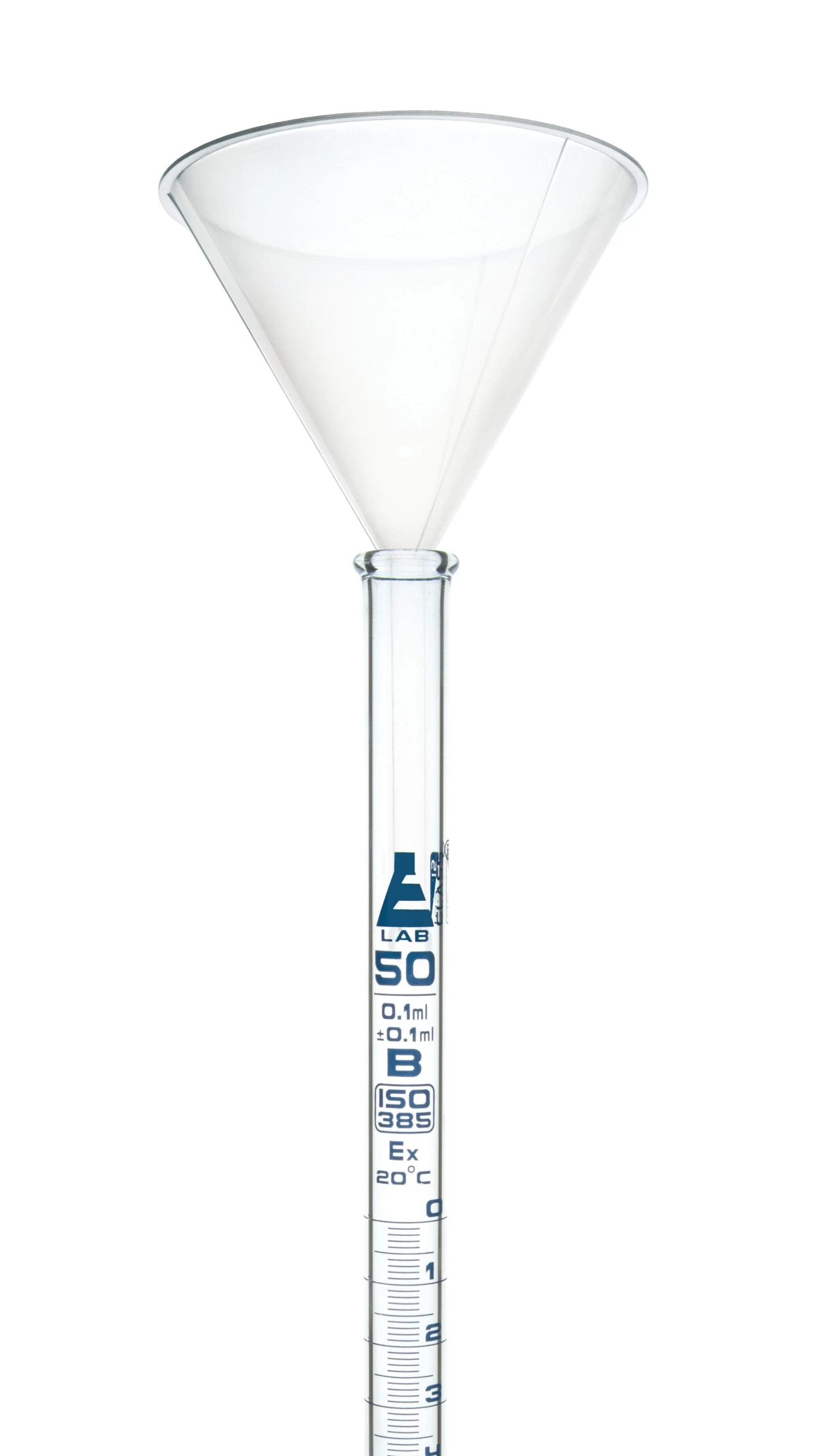 - FUNNEL || Fill your burette with the included 100mm wide polyethylene filter funnel featuring a 80mm long stem that fits into the bore of the burette