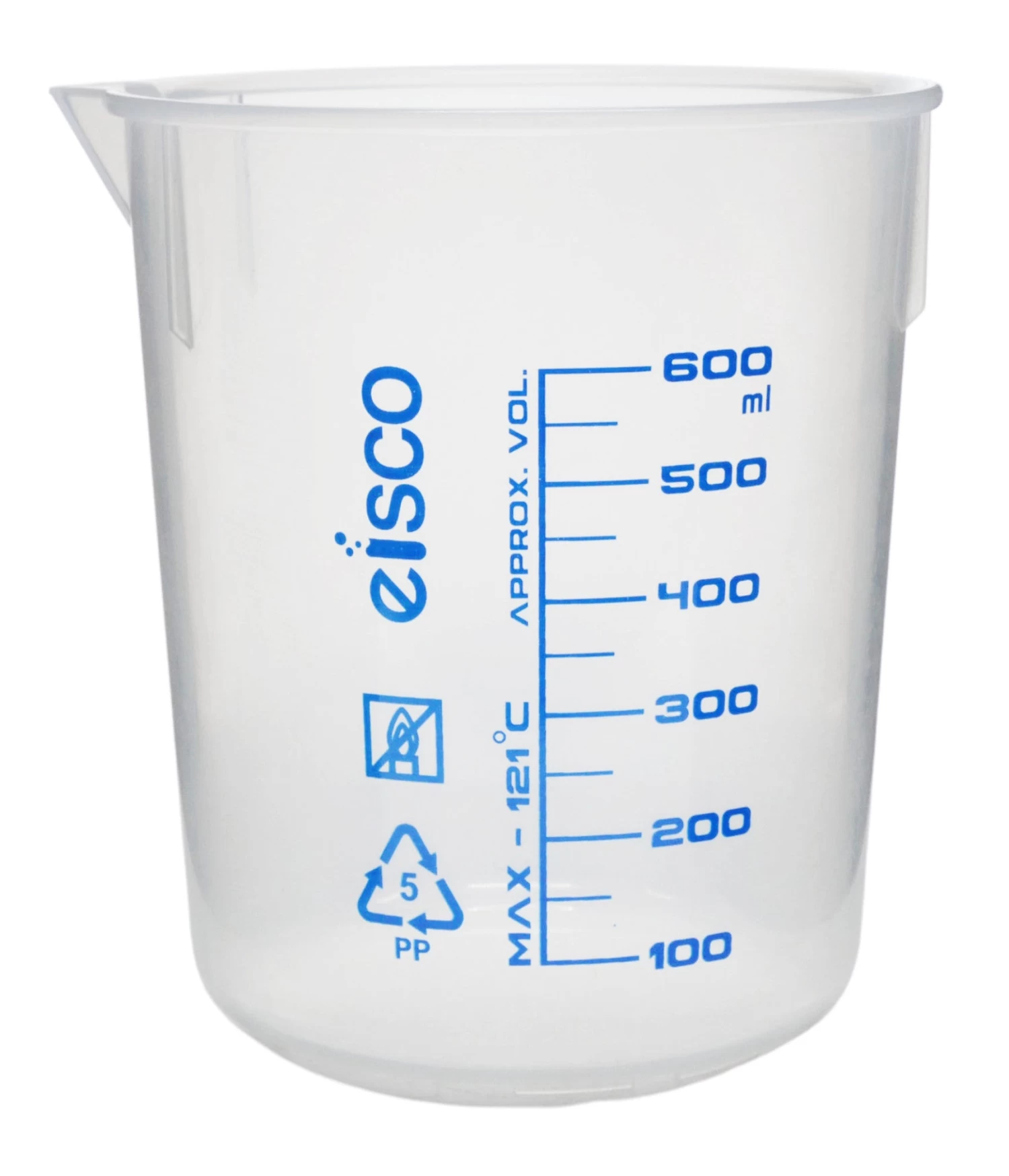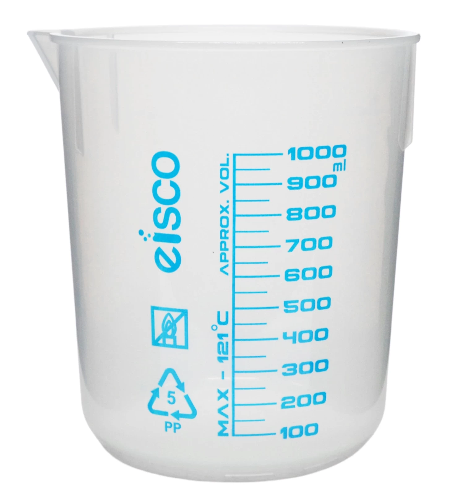 Set of 5, beakers made of high quality, heavy duty polypropylene. Includes one of each: 50ml, 100ml, 250ml, 600ml & 1000ml capacities. Each beaker features a non-drip spout for easy pouring. Transparent with easy to read, printed graduations and specifications.