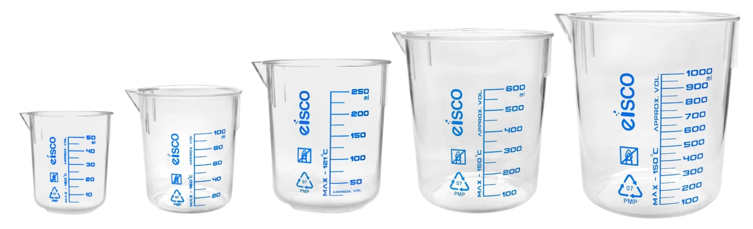 Set of 5, beakers made of high quality, heavy duty TPX Plastic. Includes one of each: 50ml, 100ml, 250ml, 600ml & 1000ml capacities. Each beaker features a non-drip spout for easy pouring. Transparent with easy to read, printed graduations and specifications.