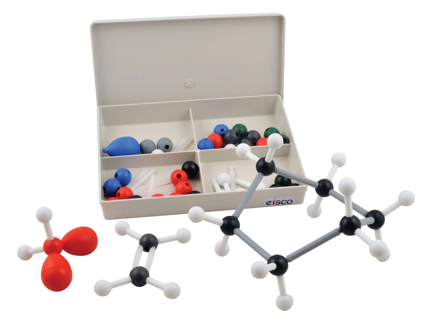 - The set comes in a four compartment plastic storage case and includes durable plastic atom parts and links for assembling different model variations