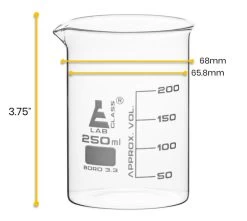 Beakers stand 5.7″ tall, and have an inner diameter of 102.5mm and an outer diameter of 105mm.