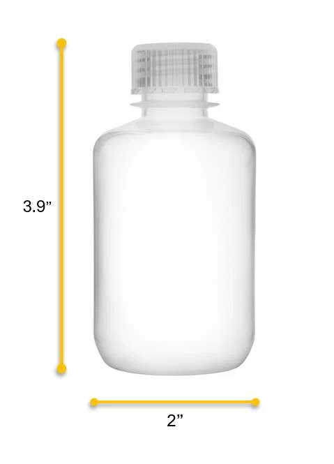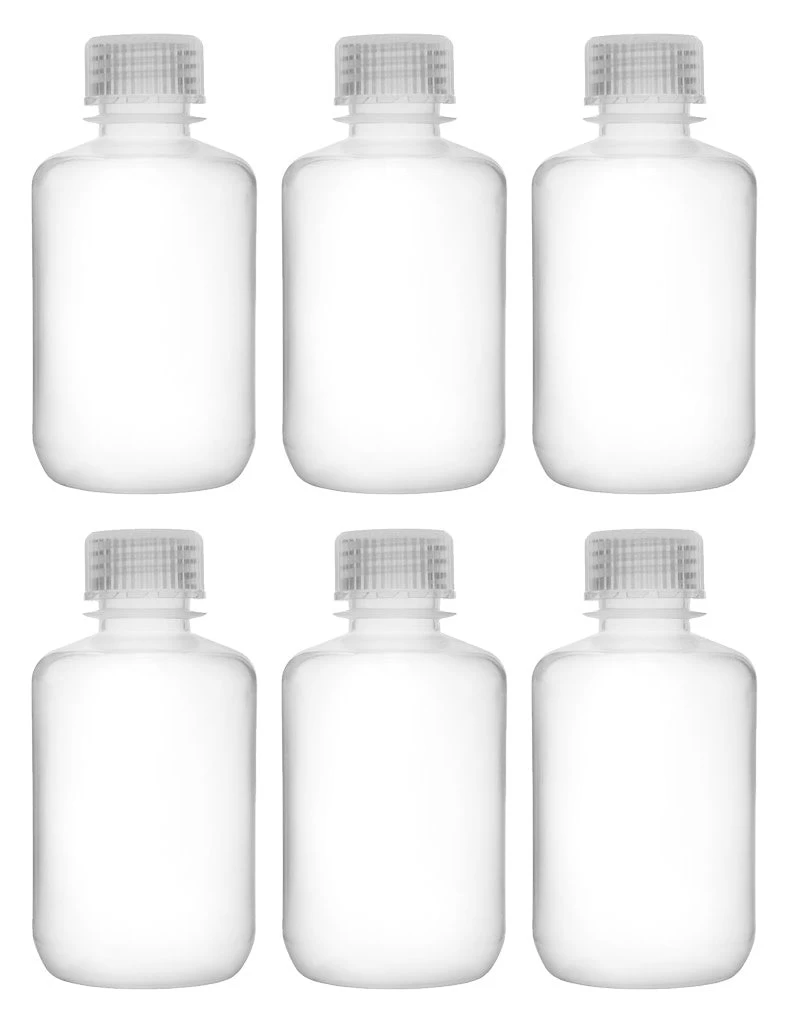 Pack of six 125ml capacity, narrow neck reagent bottles with leak-proof screw caps. Perfect for storing chemicals, liquids and powders. Both the bottle and screw cap are made of high quality, rigid polypropylene plastic that is translucent and provides excellent optical clarity.