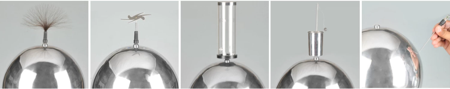 Set includes a variety of accessories that can be used to conduct more experiments with Eisco Labs electrostatics machines: