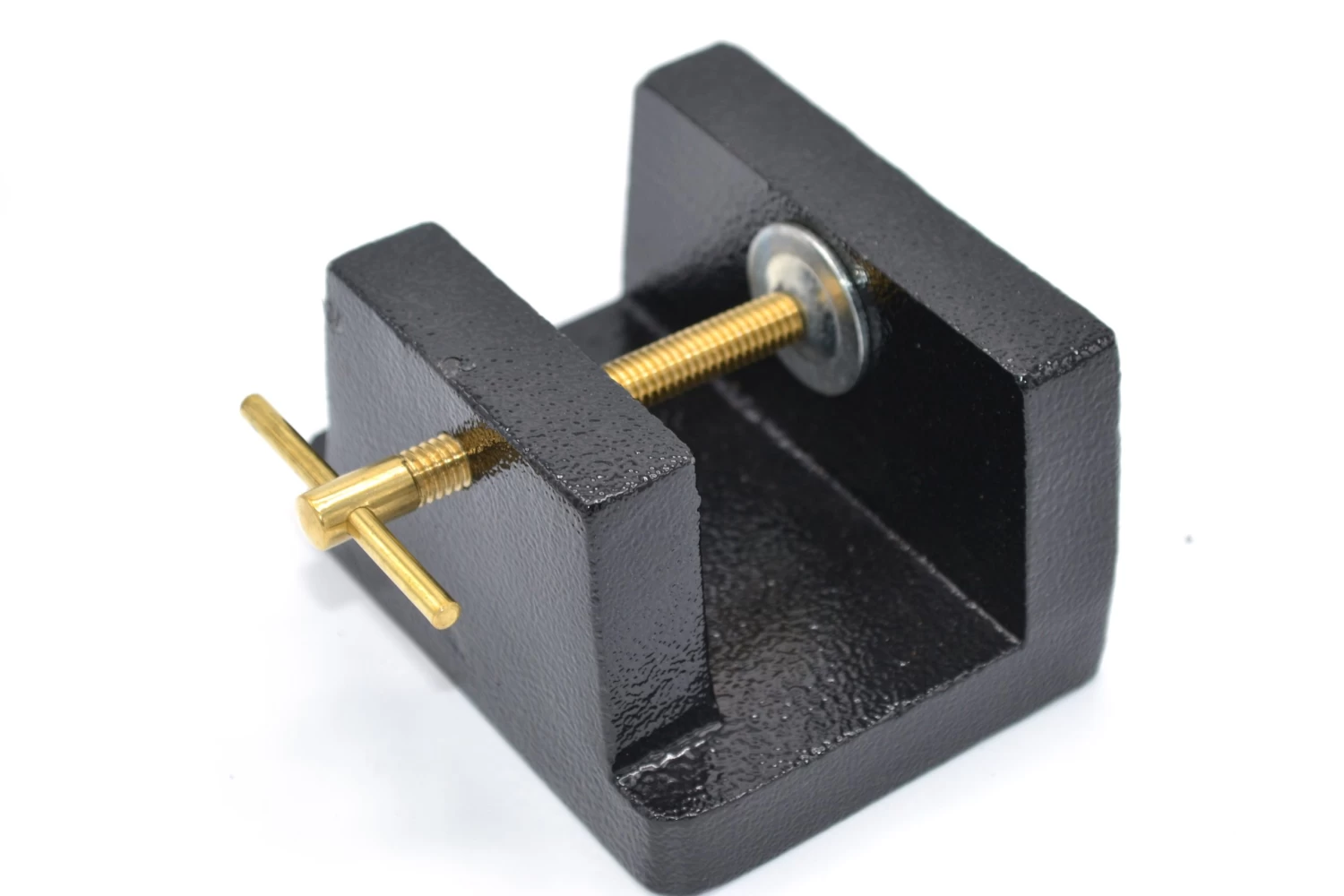 Cast metal, finished in acid resisting paint with jaws 40 mm height and fitted thumb screw. For holding flat objects like manometer, board etc. upto 34 mm thick in the vertical position. Size 9.5 cm length and 7.5 cm width.