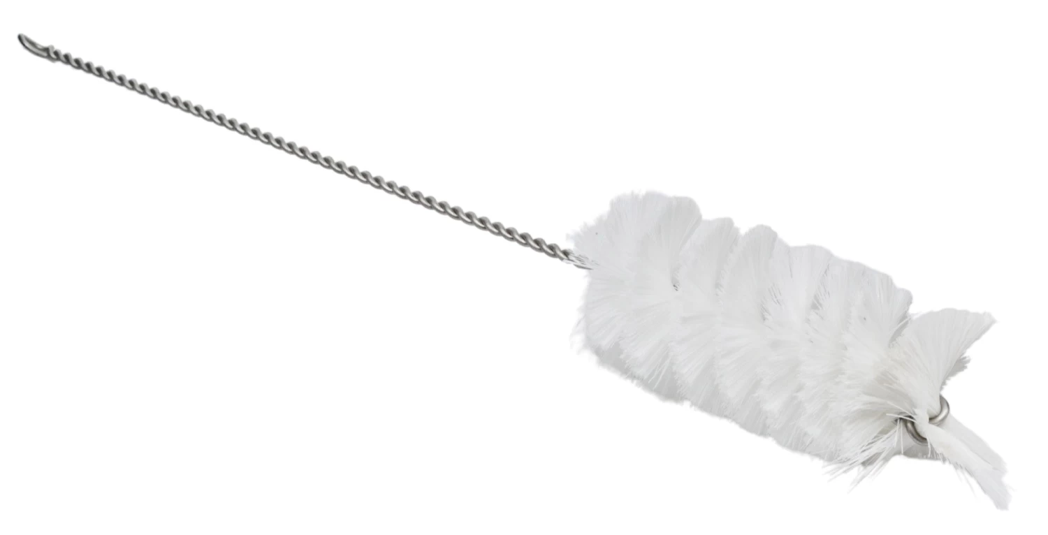 Nylon, with fan-shaped end on stainless steel wire handle. Suitable for erlenmeyer flasks, cylinders and beakers.Total Length-300 mm, Brush length-110 mm, Brush dia.-40 mm