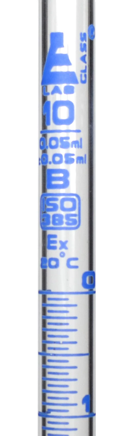 - CLASS B || ± 0.05mL tolerance and 0.05ml sub. divisions – Accurate as per class B, DIN ISO 385 Compliant