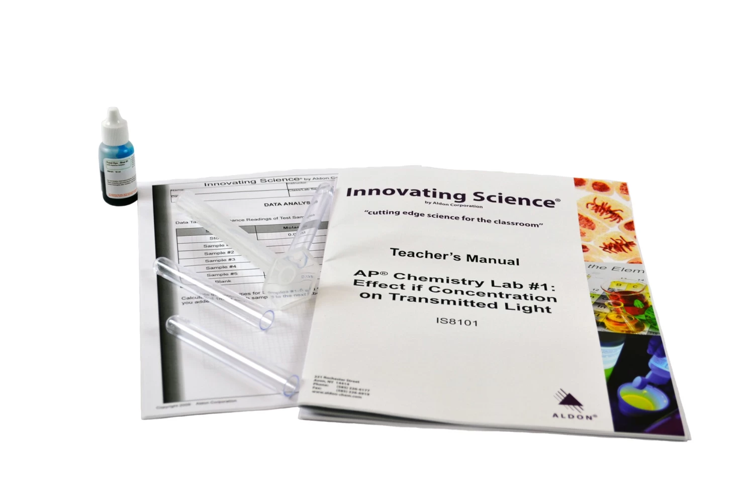 Students will be guided through an investigation to study food dyes and determine how the absorbance of light can be used to study color and determine concentrations of chemicals in solutions. The activity contains enough materials for 15 groups of students as well as a Teacher’s Guide and Student Study Guide Copymasters. This lab meets Big Idea 1, Investigation 1, and Primary Learning Objective 1.15.