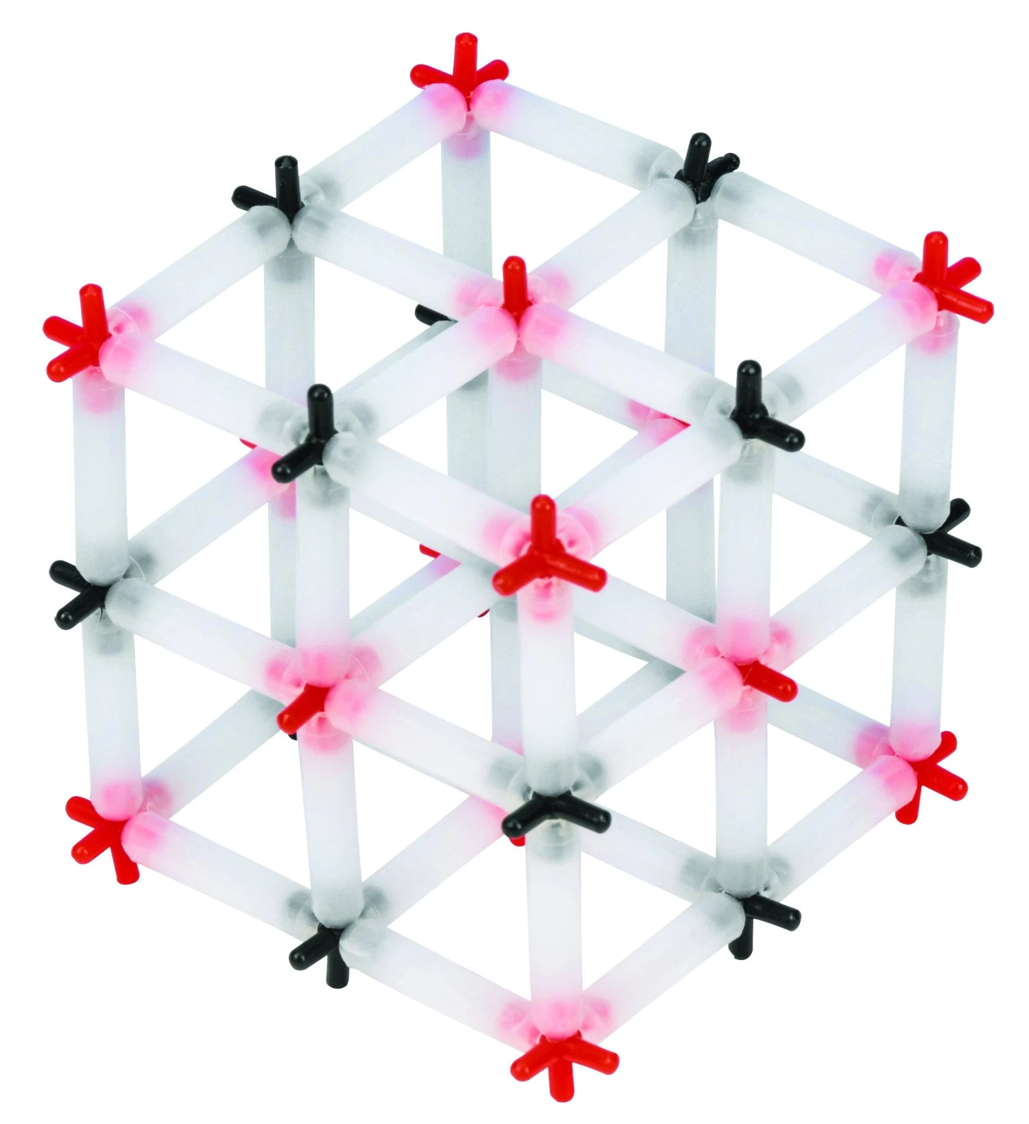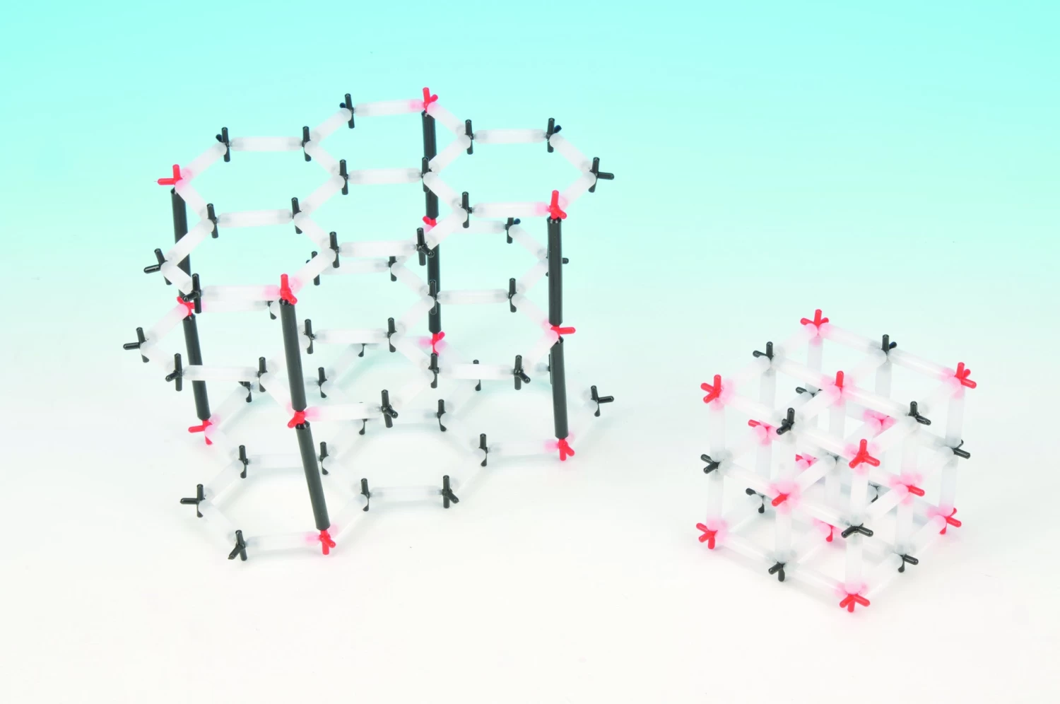 Model kits for assembling various crystals lattices, which are in skeletal form. The lattices represent certain classic structures and have been built to a large enough size so that their different faces can be seen. Complete with assembly instruction