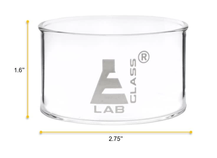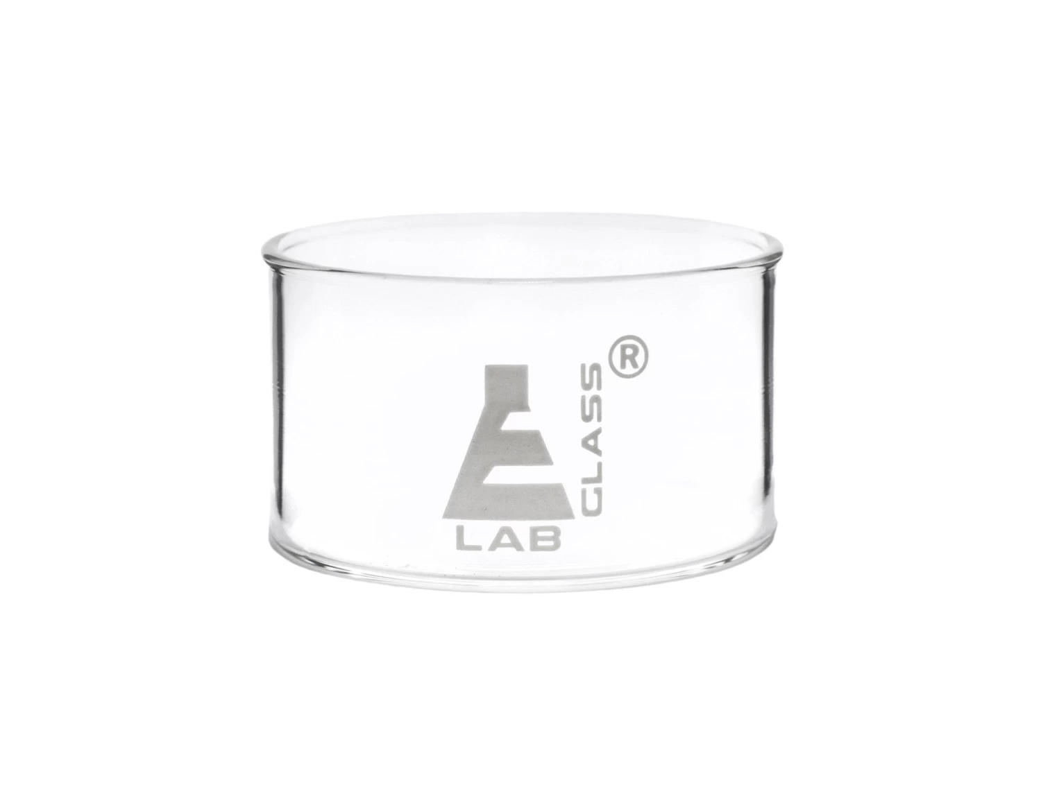 100ml capacity crystalizing dish made of high quality, heavy duty Borosilicate 3.3 glass. Features flat base, and beaded rim. No spout or lid.
