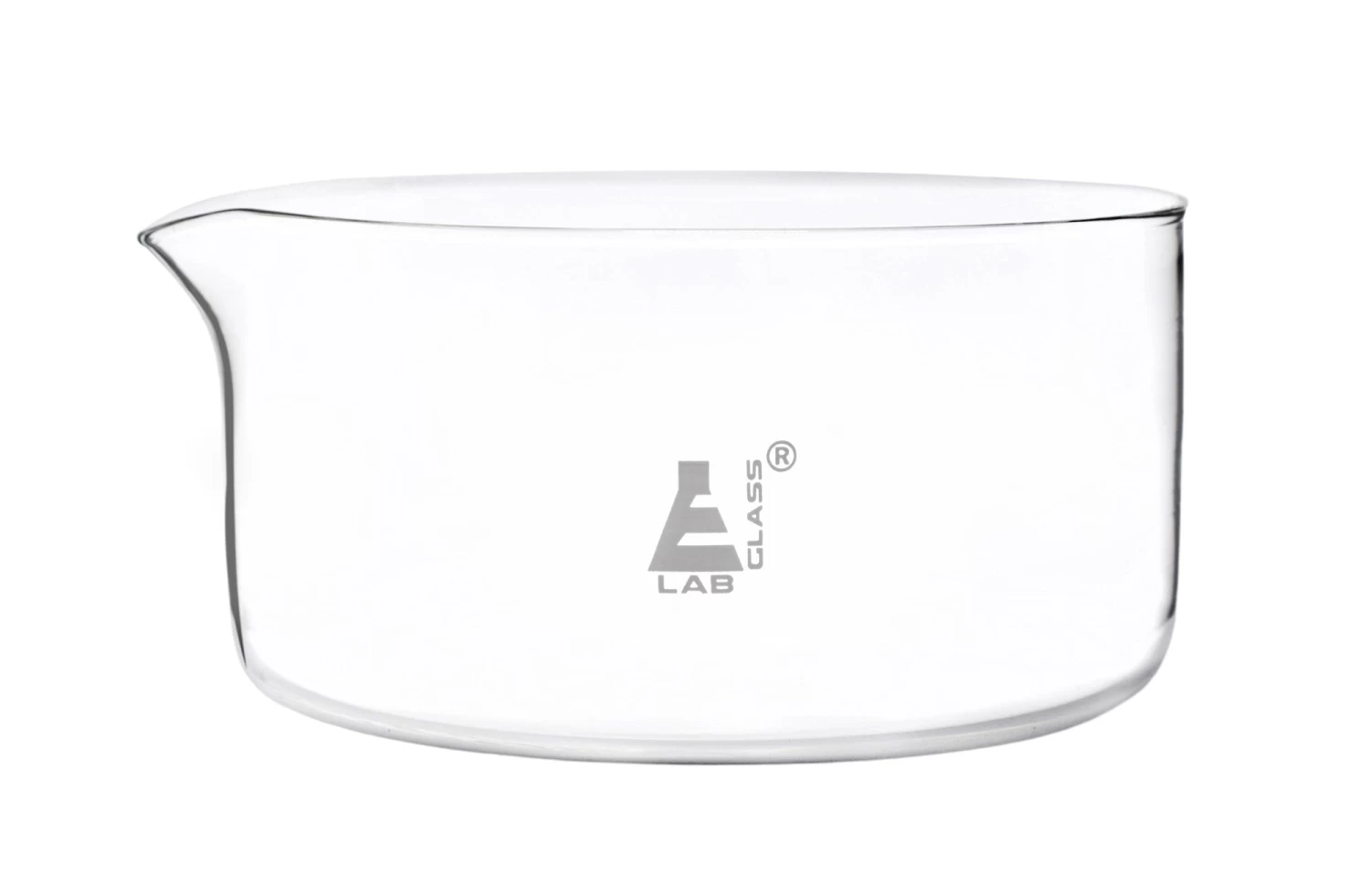 2000ml capacity crystalizing dish made of high quality, heavy duty Borosilicate 3.3 glass. Features flat base, and beaded rim. Spout for easy pouring.