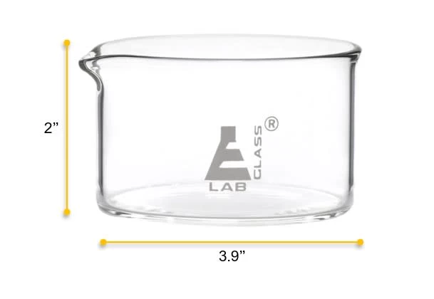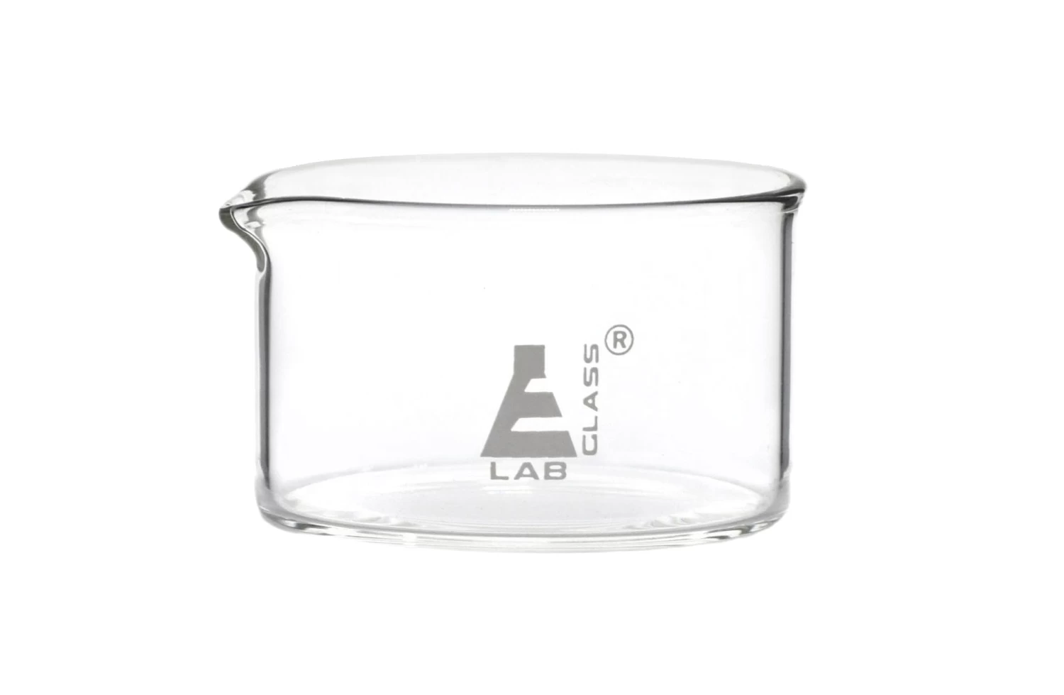 300ml capacity crystalizing dish made of high quality, heavy duty Borosilicate 3.3 glass. Features flat base, and beaded rim. Spout for easy pouring.