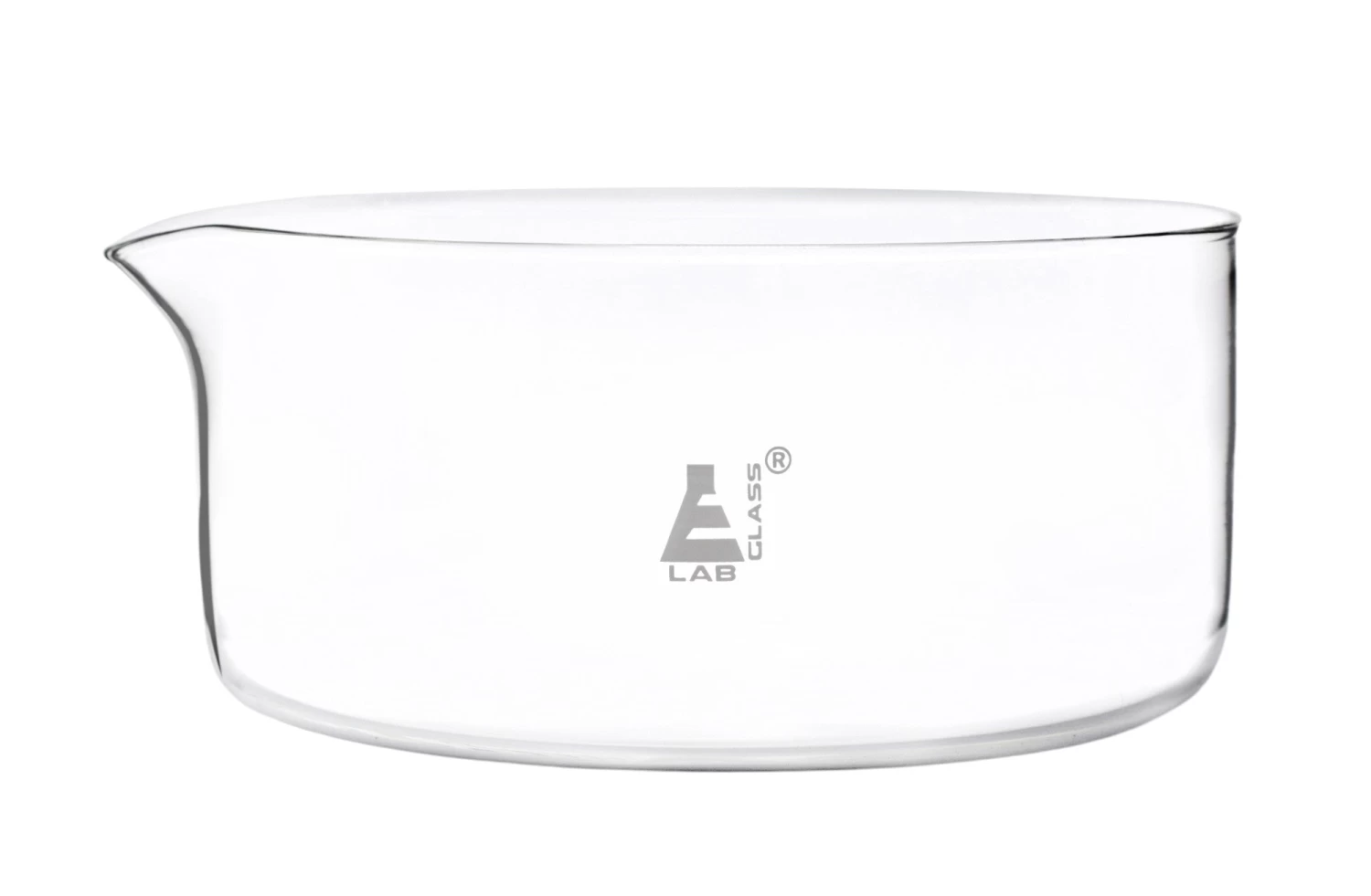 3500ml capacity crystalizing dish made of high quality, heavy duty Borosilicate 3.3 glass. Features flat base, and beaded rim. Spout for easy pouring.
