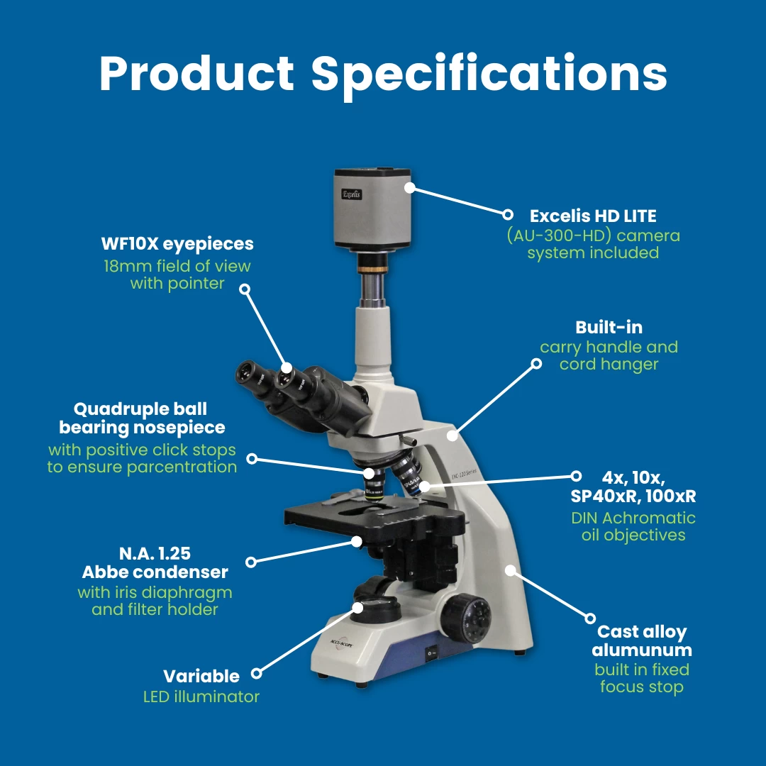 The Accu-Scope EXC-123-HD is a complete microscopy system that includes both a compound microscope and HD-Lite camera for advanced study.