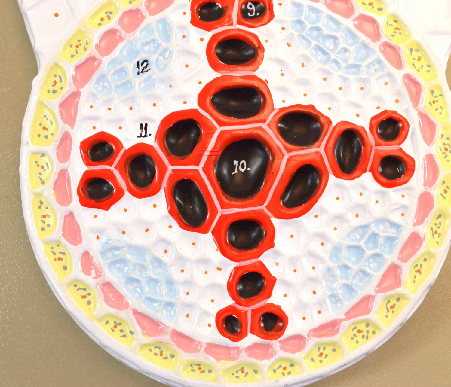 The dicot root model is a vibrantly colored 3D model with detail that shows the inner anatomy and vasculature of a dicot root. This sturdy model provides an excellent visual for studying the structure and function of a dicot root in a visually and kinesthetically effective manner.