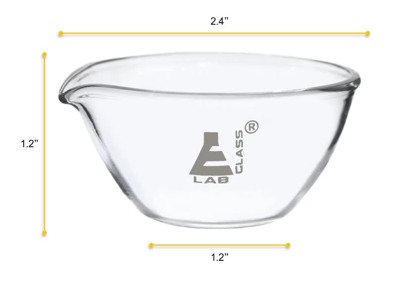 - FLAT BOTTOM & SPOUT || Basin features a flat bottom and a spout for easy pouring. Designed for evaporating excess solvents in the laboratory, but is an excellent addition to any kitchen for measuring, mixing or storing ingredients