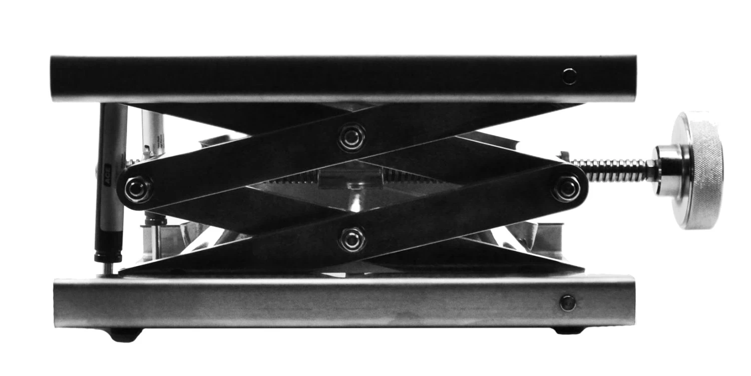 - EXTENDABLE || Adjustable lab jack with stainless steel molded handle and hole for fine threaded adjustment rod – Easy, fluid, pressure-supported movement of platform with and without load for precise height adjustments