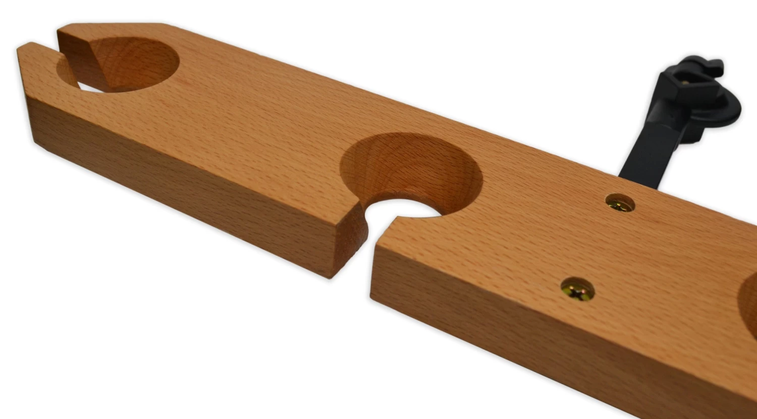 Durable, sturdy funnel rack made of quality hardwood. Holds up to four funnels. Each hole accommodates funnels with stems measuring up to 16mm in diameter. 2″ slotted holes are beveled and spaced evenly at 3″ increments along the rack. Fitted with an iron, screw adjustable clamp for easy attachment to support rods up to 22mm in diameter. Clamp arm extends 4.5″ from funnel rack. Designed for use in professional laboratories, but is an ideal choice for science classrooms and household use. Apparatus is 15″ wide, 8.5″ long, and 1.25″ high.