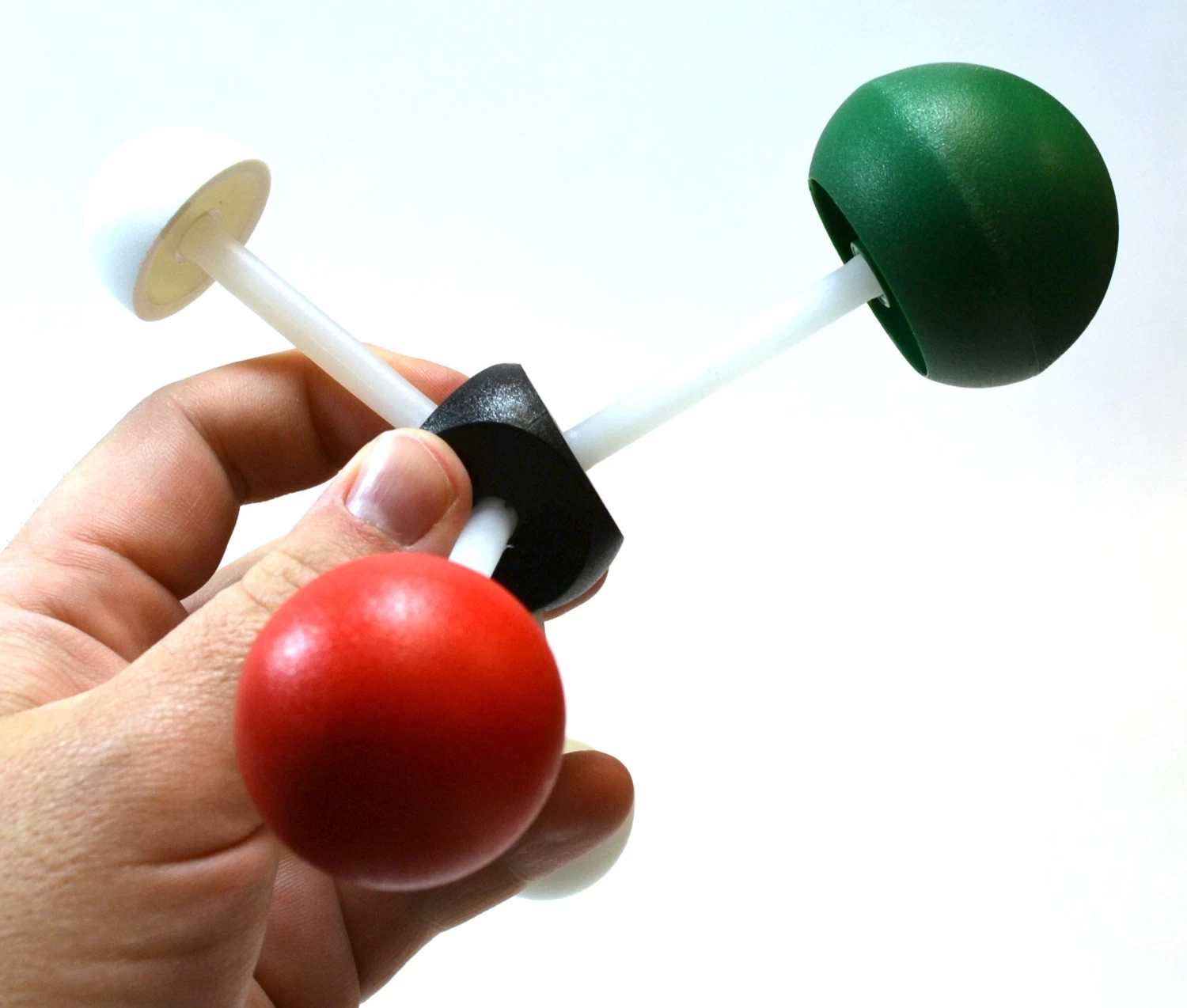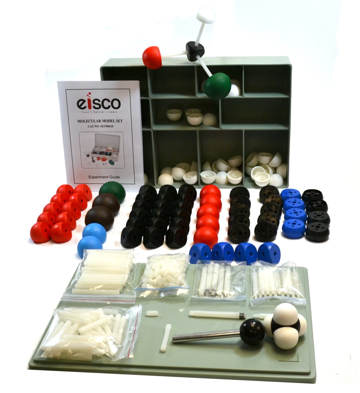The perfect molecular model set that your entire classroom can see. Atoms range from 1-2 inches in diameter. Set consists of 345 pieces, of which 99 are atoms. Molded from tough plastic this set will last the life of your carrier.