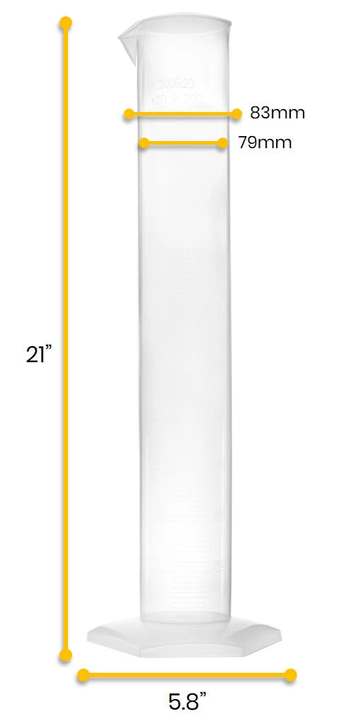- INDUSTRIAL QUALITY || 2000ml capacity measuring cylinder. Class B tolerance. The translucent, rigid polymer construction is resistant to fatigue for superior and dependable durability