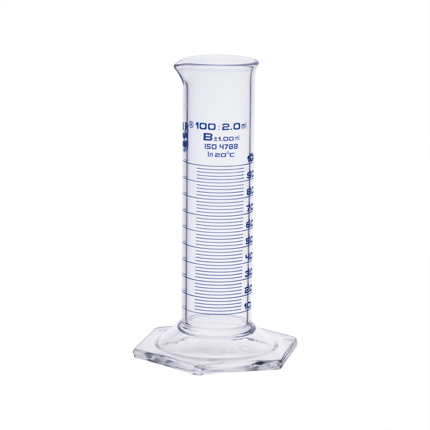 25ml capacity measuring cylinder made of high quality, heavy duty Borosilicate 3.3 glass. Spout for easy pouring, and hexagonal base for extra stability. Class B tolerance, ±0.50ml as per ISO/ASTM.Â