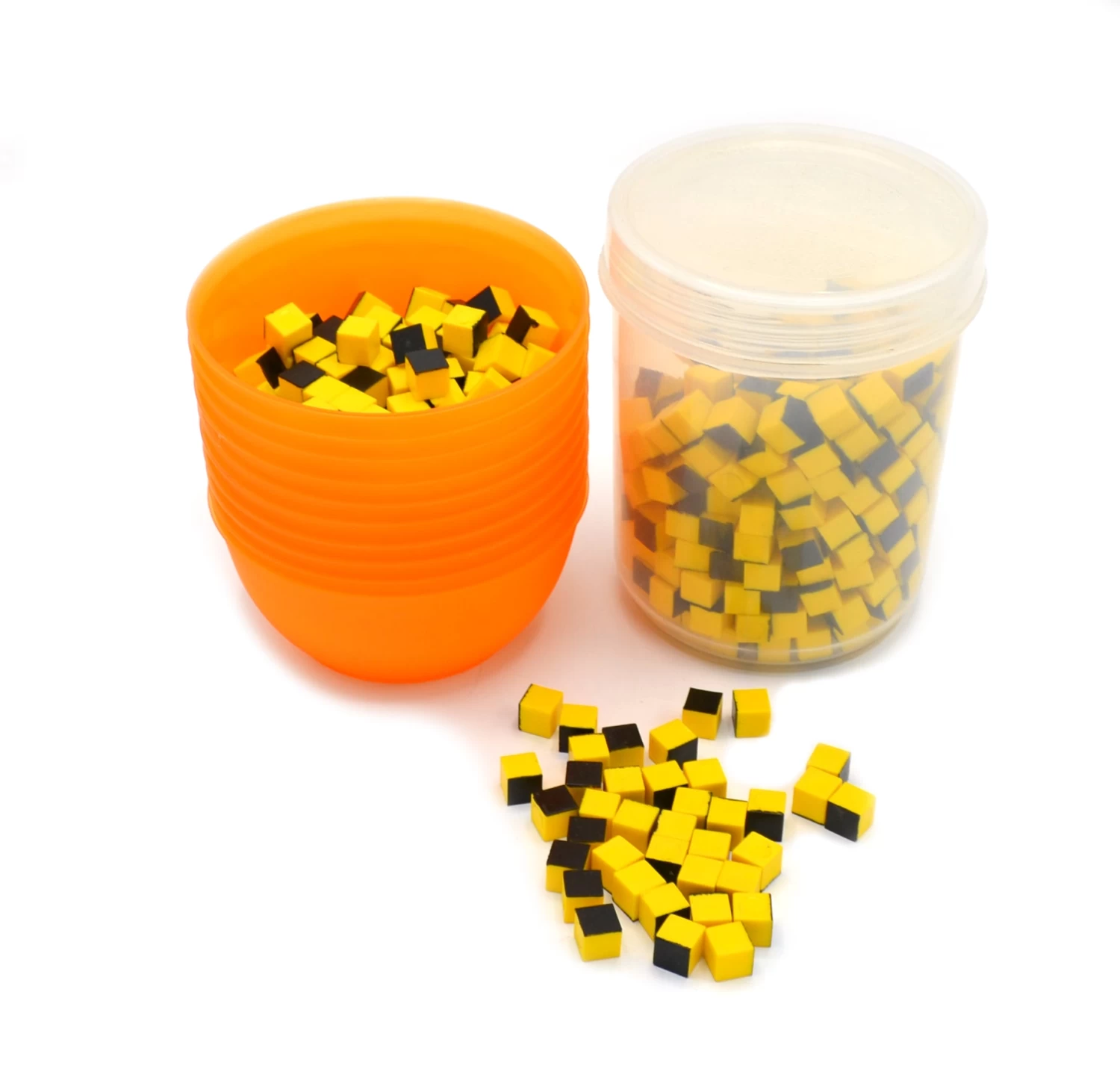 This demonstration model offers a perfect way for students to safely study particles. The set contains ten trays and 500 small plastic cubes, representing nuclei. Each cube has one face identified. When this face is the uppermost face, the cube represents a decayed radioactive nuclei. Ten groups then shake their set of nuclei and roll them onto a table. For each throw, the decayed nuclei are counted and removed from the set. This activity allows students to create a decay curve and develop a greater understanding of radioactive decay in a safe manner.