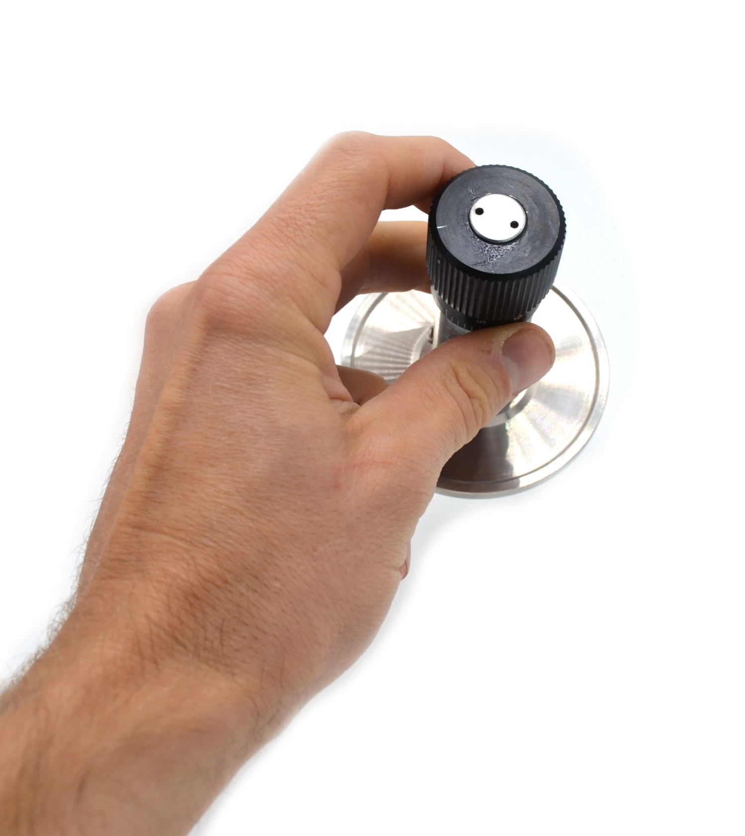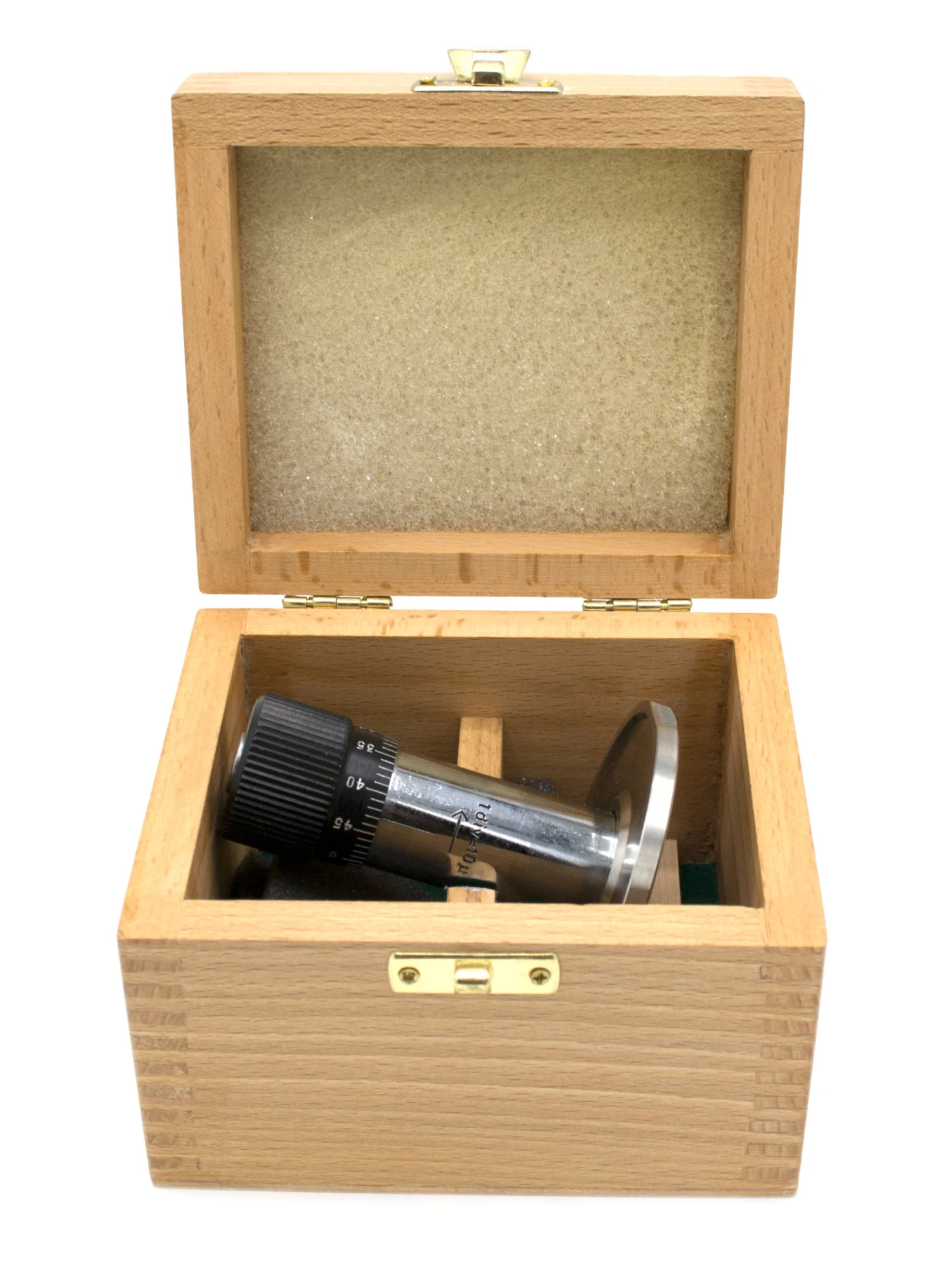 Hand Microtome is used for section cutting for microscope slides. Overall height is 85mm. Diameter of the Brass plate is 75mm. 2.3cm dimameter center for specimen cutting. Knife or clamp are not included with this unit. Adjustable dial for sectional thickness, 10 microns per click. Supplied in wooden hinged case