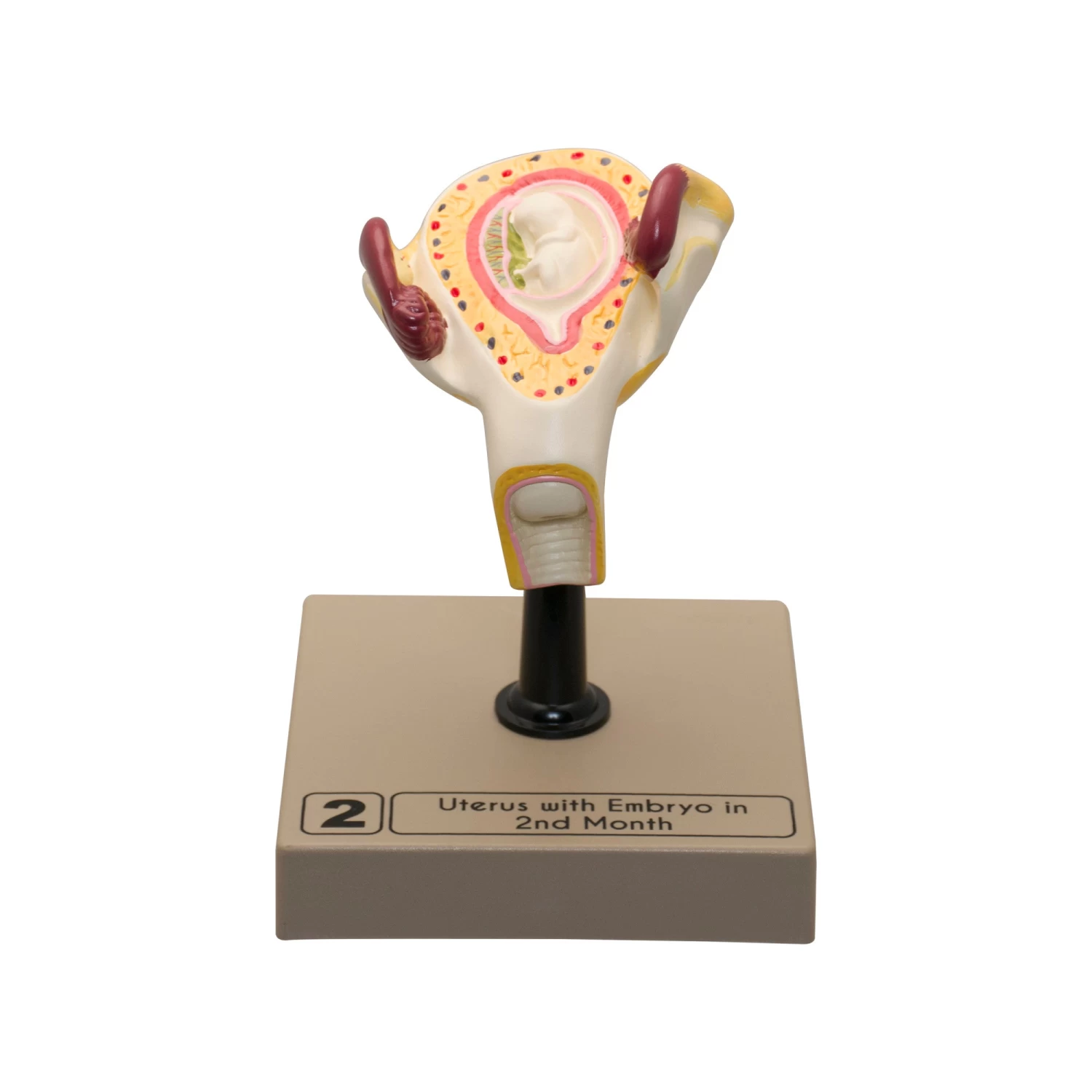 The detailed 3D renderings of the development of the human fetus in utero with their vibrantly colored anatomy are ideal for studying the complete gestation of a human baby from the embryo stage to month 7. Each stage is clearly labeled on the base that it is mounted on. Models representing months 4-7 have removable fetuses that show how the umbilical cord connects them to the mother for nourishment.