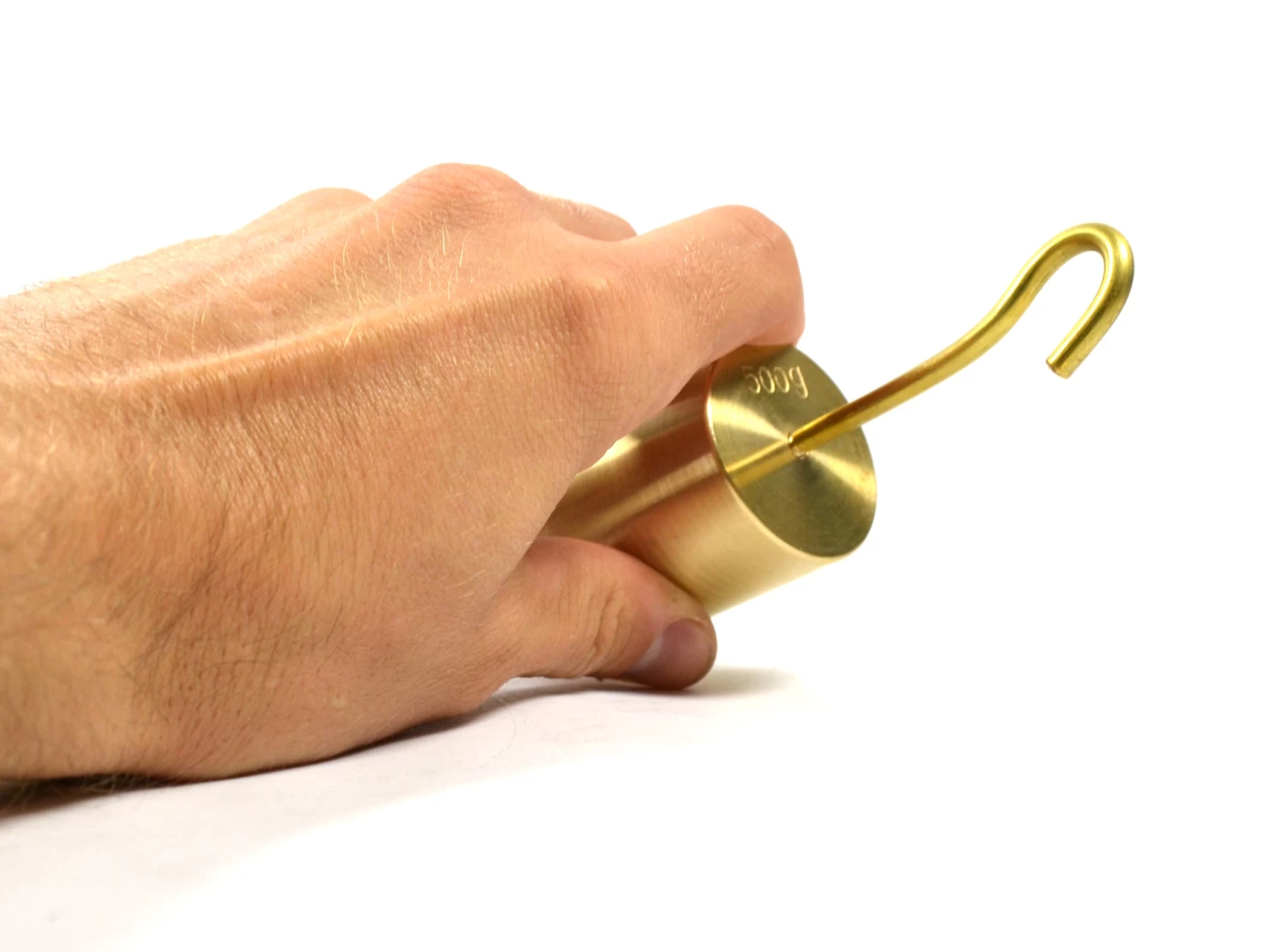 Hooked Weights – Brass – 500g. Weight measures 37.8mm in diameter