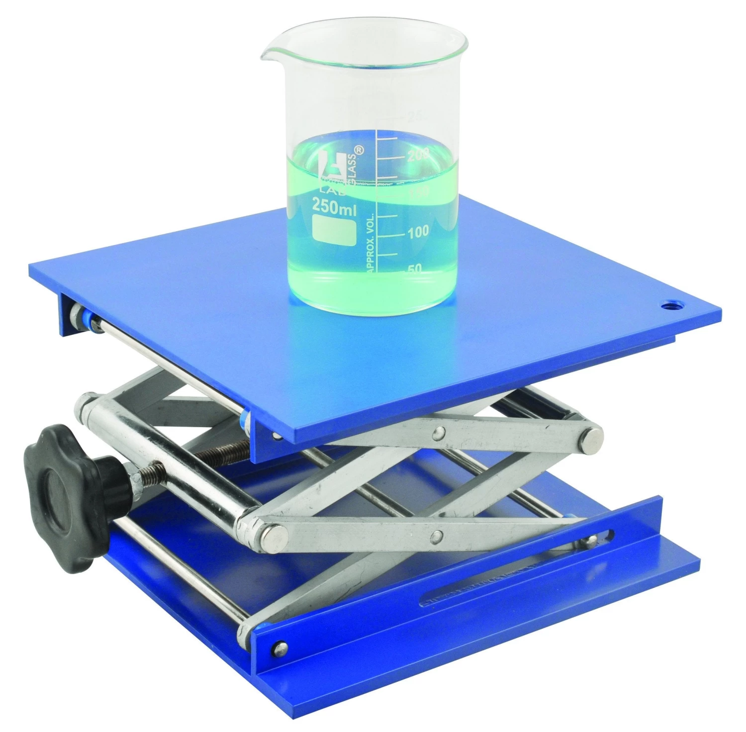 Aluminium with stainless steel operating screw top plate with 10 mm tapped hole in right rear corner for accepting retort rods. Both plates are anodised. Size 20 x 20 cm