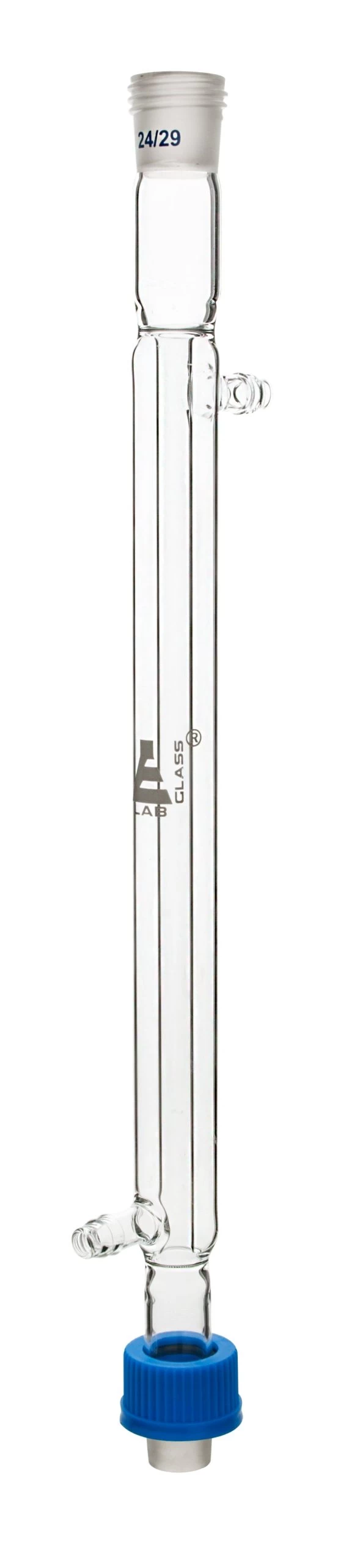 300mm Liebig condenser made of high quality, heavy duty borosilicate glass. Screw thread joint. Socket / Cone size 24/29. Side arms each measure 1.25″ in length and have an inner diameter of 8mm and an outer diameter of 11mm.