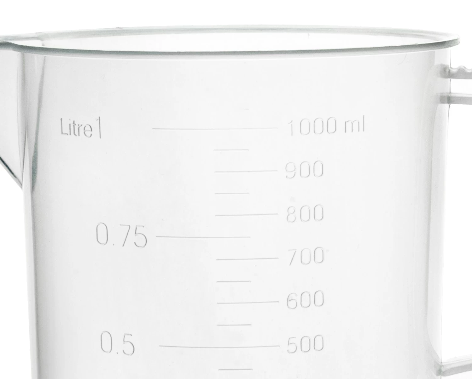 - POLYPROPYLENE PLASTIC || 1000ml measuring jug made of premium quality polypropylene plastic. Short form, Euro design