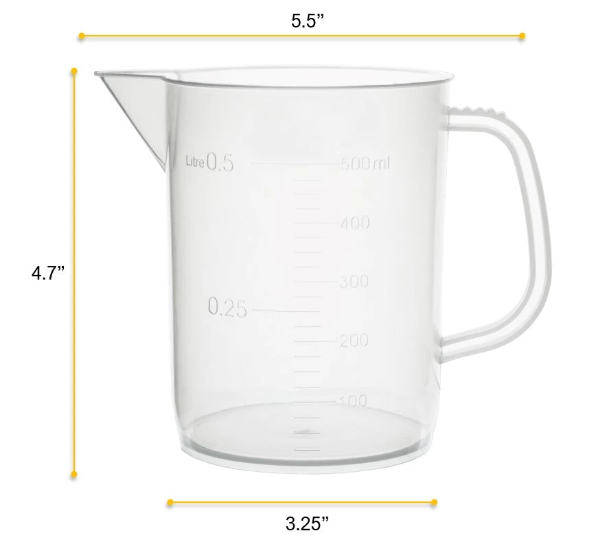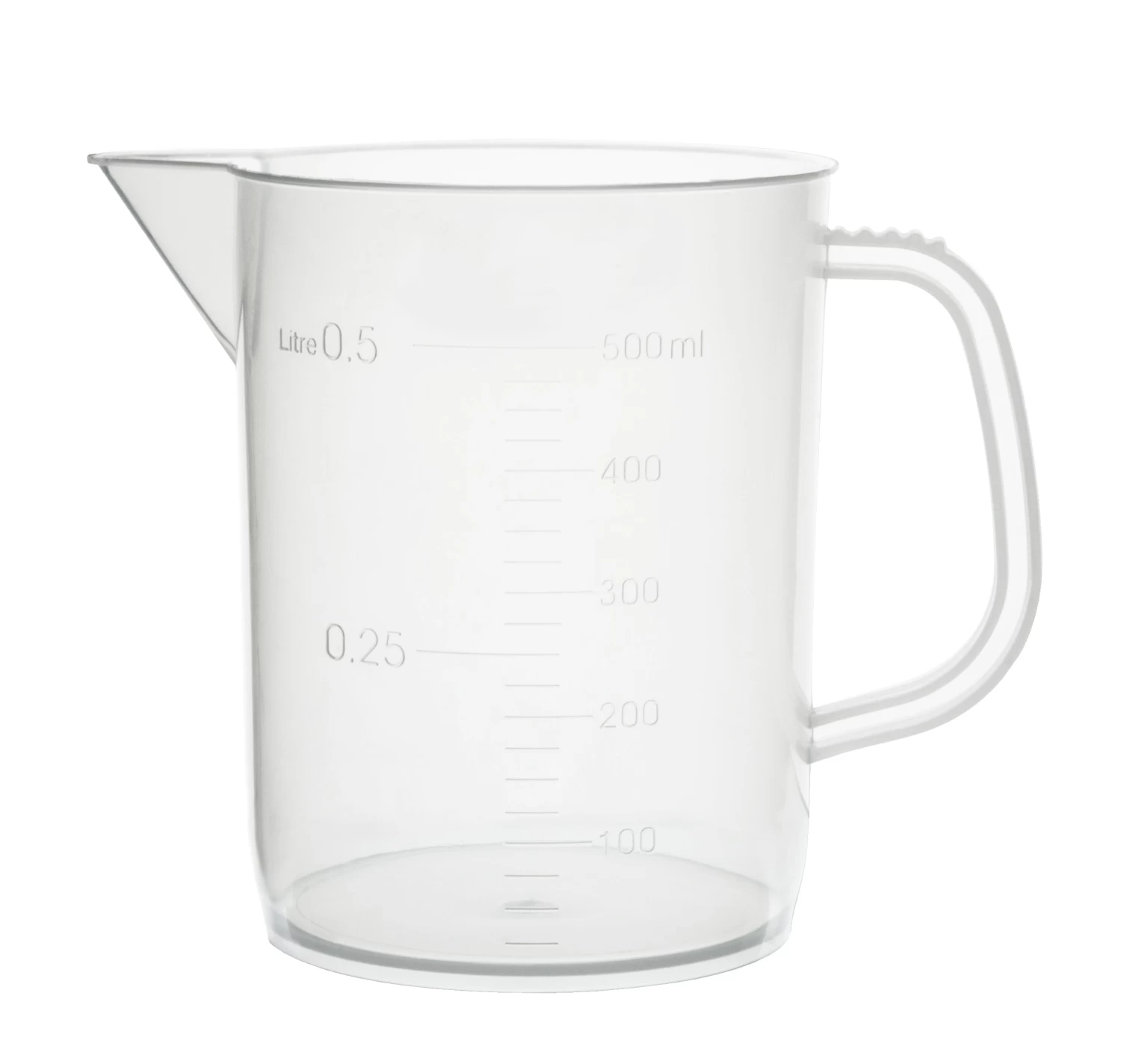 - POLYPROPYLENE PLASTIC || 500ml measuring jug made of premium quality polypropylene plastic. Short form, Euro design