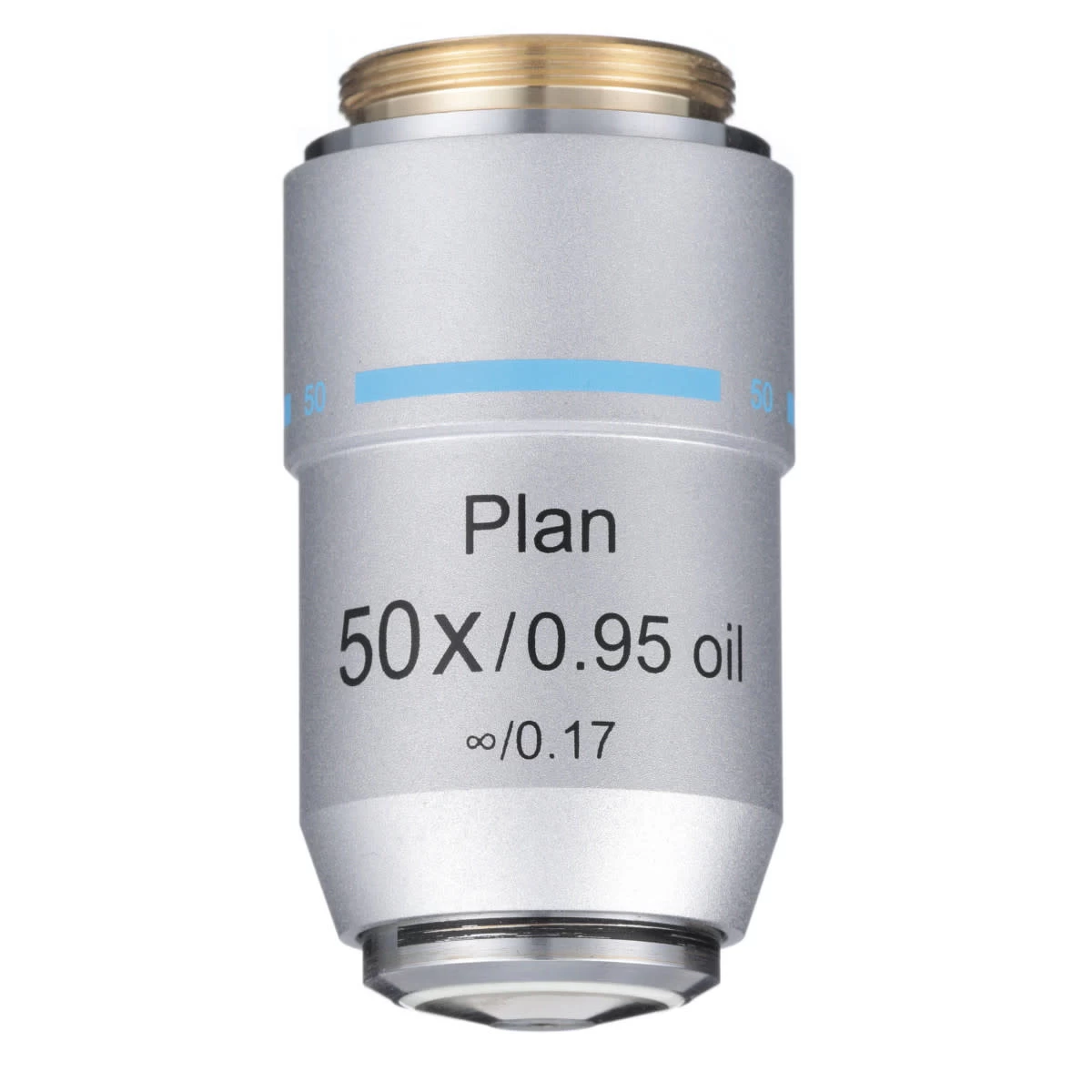 - 50xR Oil Immersion Infinity DIN Plan Achromat Objective fits Accu-Scope Microscope Series 3000-LED, EXC-350, EXC-400, 3012, and 3000