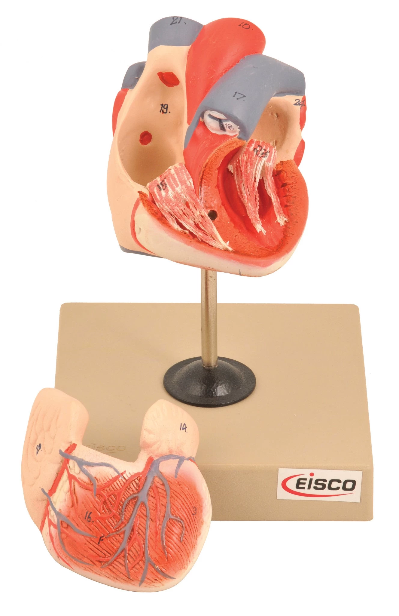 Natural size, front heart is removable to view the chambers. Mounted on base. Supplied with English Key Card.