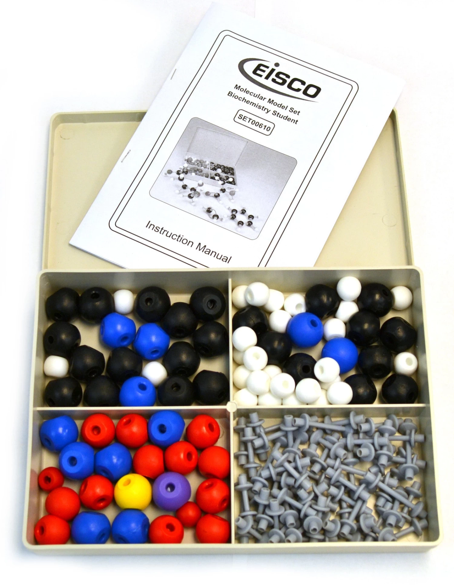 This molecular model set includes 135 pieces to allow students to build a large number of organic molecules. This is a great fit to any biochemisrty class. Made of high durable plastic. Comes with case that has 4 divided sections molded inside to organize pieces.