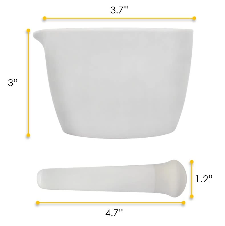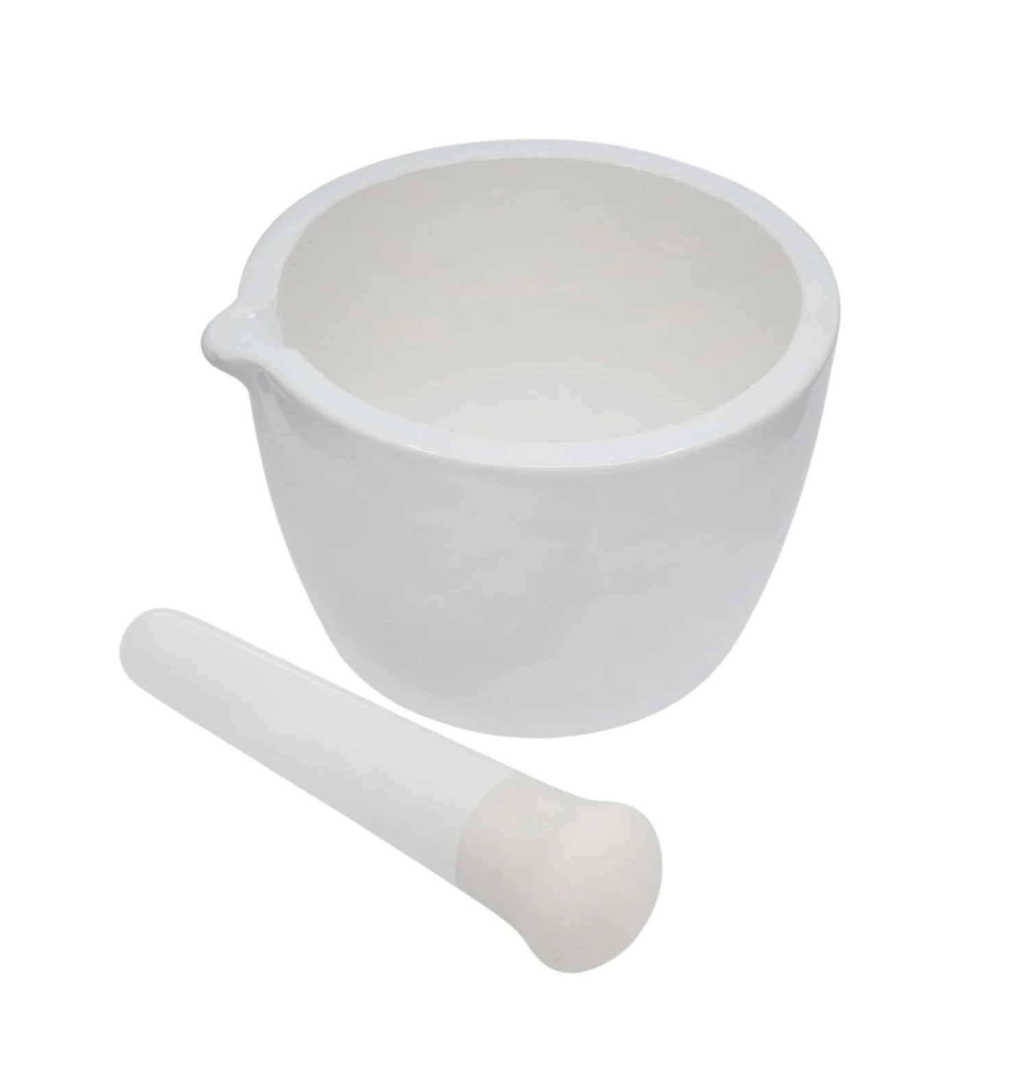 - PORCELAIN || Mortar and pestle are both made of solid porcelain. Inside grinding surface of mortar and the rounded end of the pestle are unglazed for precise grinding and crushing