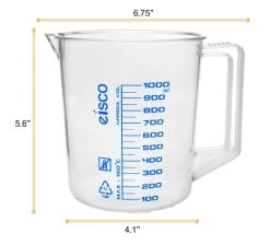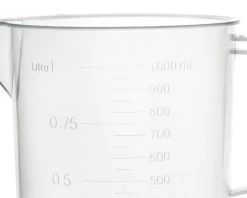 Measuring Jug, 1000ml – Short Form, Euro Design – Polypropylene Plastic – Raised Graduations